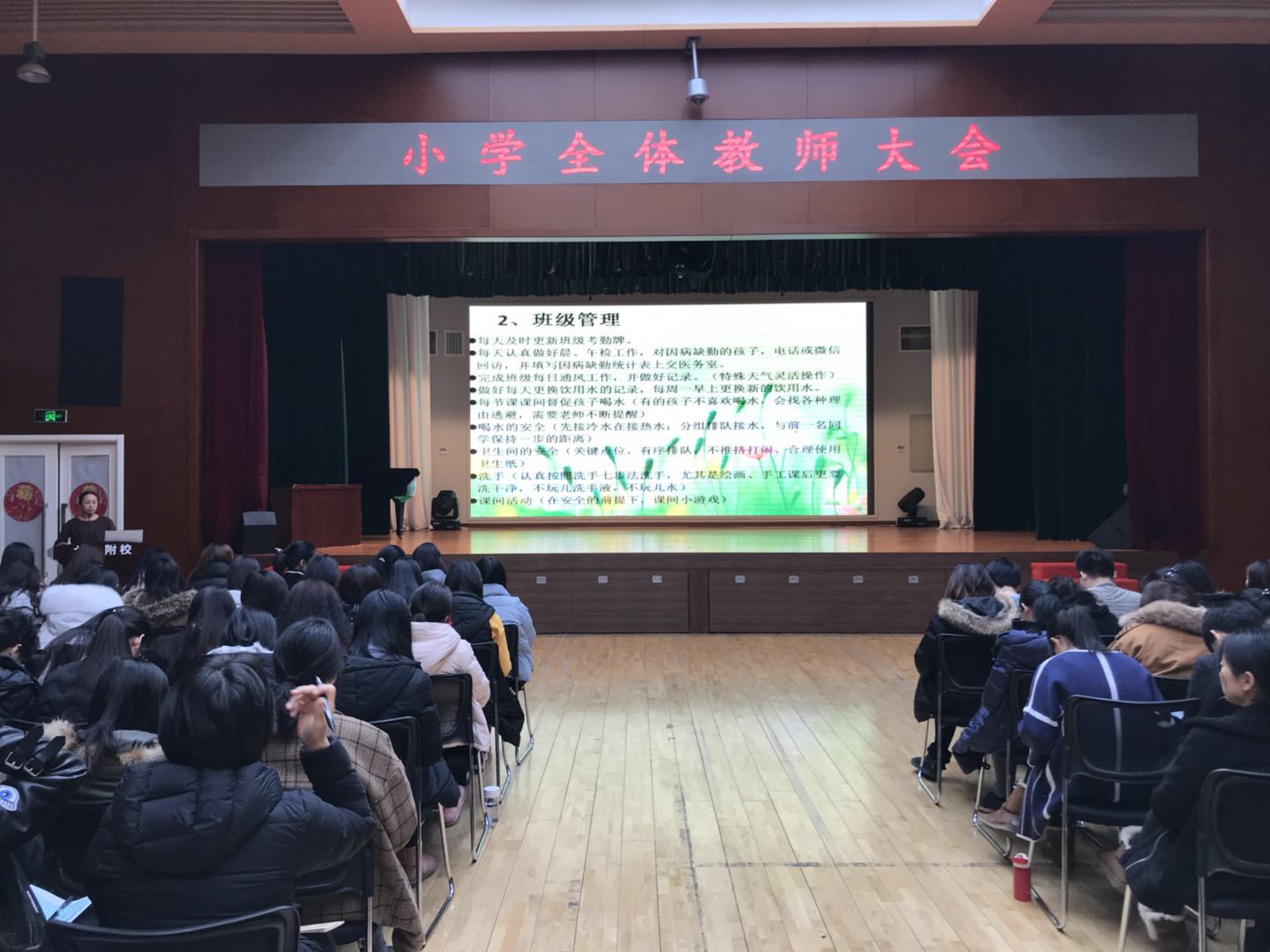 3月2日下午,小学校区在“国瑞厅”召开全体教师大会。参加会议领导有:副校长刘宏利,副校长孟娜、李琳、孙亚楠及教务主任刘蕾、李骏、杨建。大会由李骏主持。