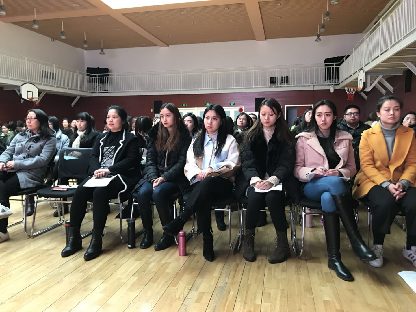 参会教师认真听会。大会最后,领导祝大家元宵佳节快乐!