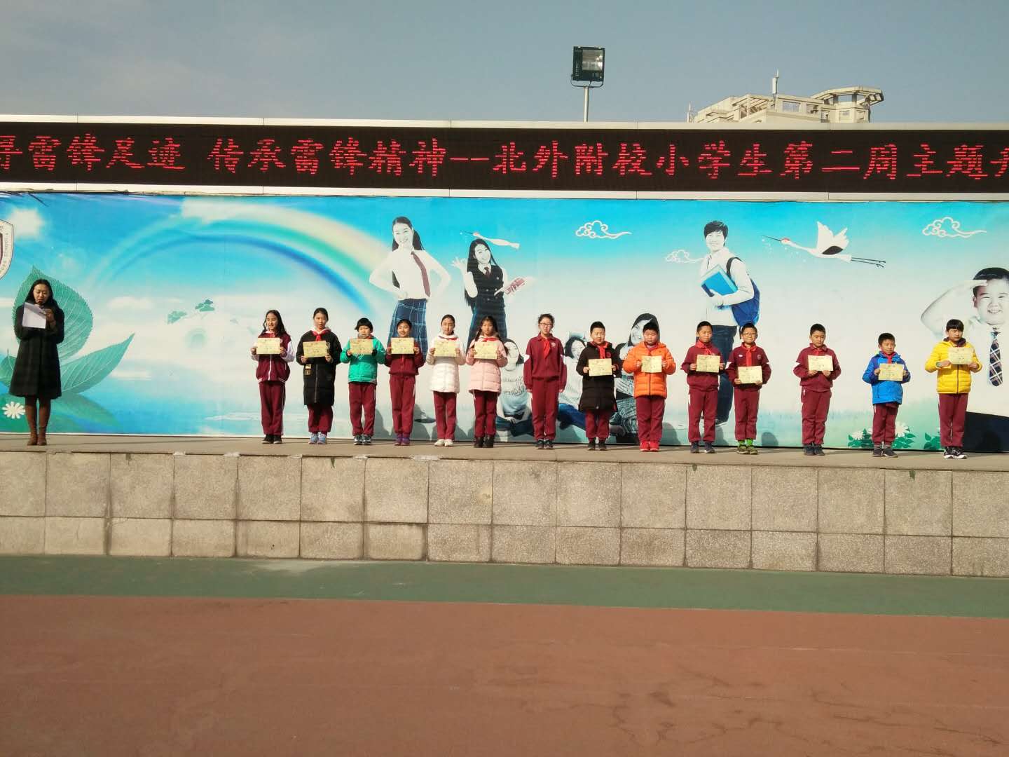 3月5日,我校小学举行本学期第二周升旗仪式。本次升旗仪式的主题是“追寻雷锋足迹,传承雷锋精神”,本周担任升旗的班级是四(9)班,担任国旗下讲话的班级是三(2)班。