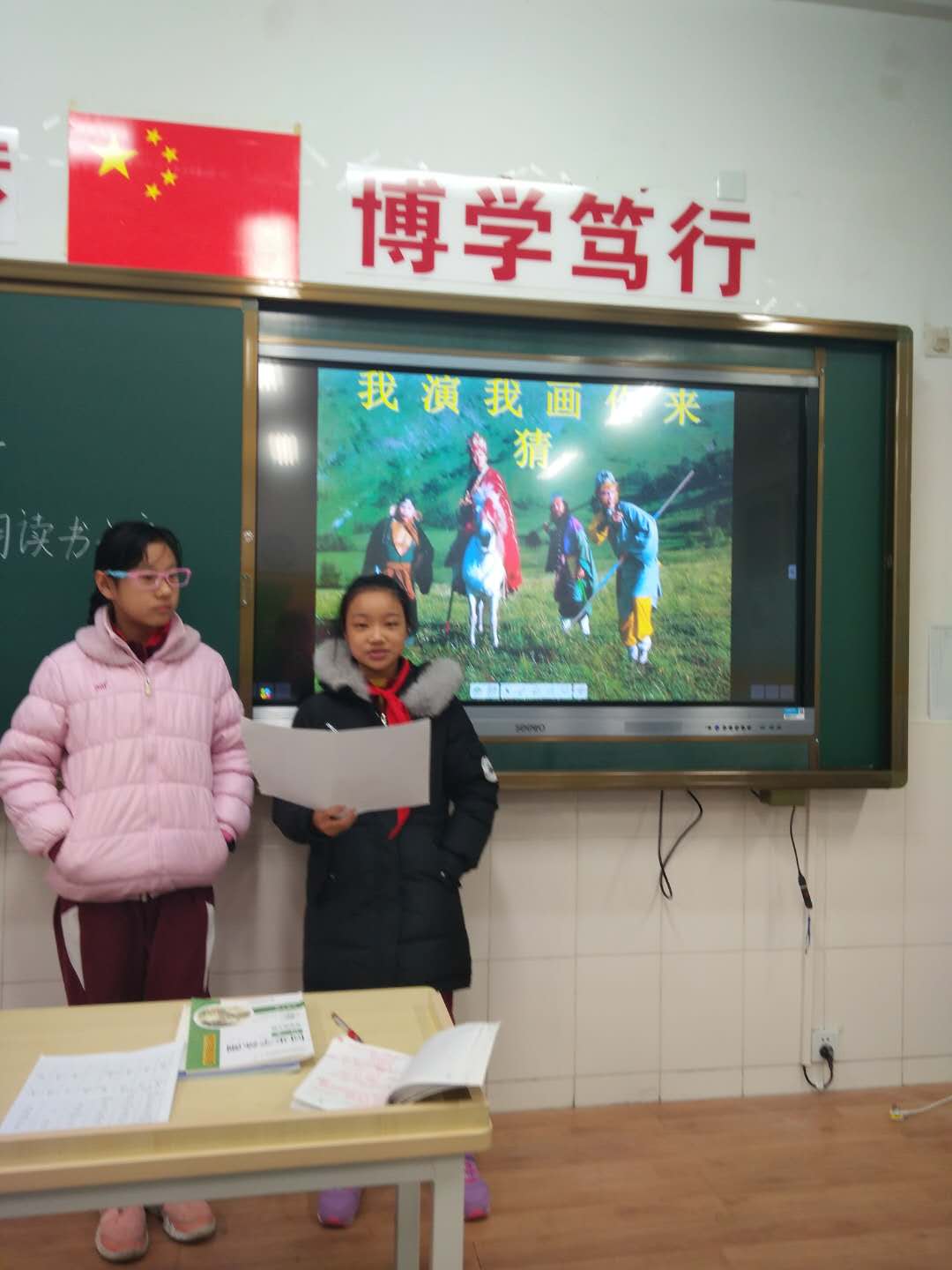 在开学第一课时,孩子们以“我演我画你来猜”的形式分享了自己的阅读成果,课堂气氛热烈,每一个孩子都漫步在西游记的魔幻世界中。这既加深了孩子们对《西游记》的理解,还深切体会到中华文学经典的魅力。