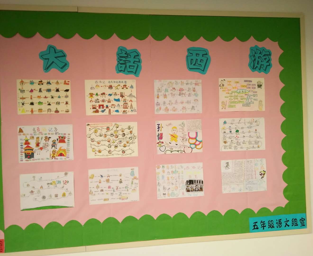 此次活动以“大话西游”为主题,展示出了孩子们在寒假期间“共读一本书”《西游记》的作品。孩子们的手抄报作品内容丰富,有西天取经路线图、有西游人物名片、还有西游人物思维导图。这一幅幅手抄报画面生动活泼,充满童趣,充分展现了学生们浓厚的阅读兴趣与独具匠心的设计。