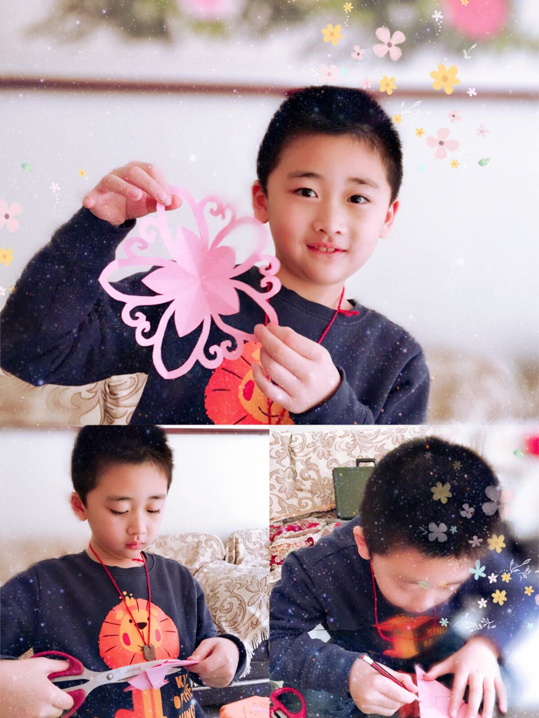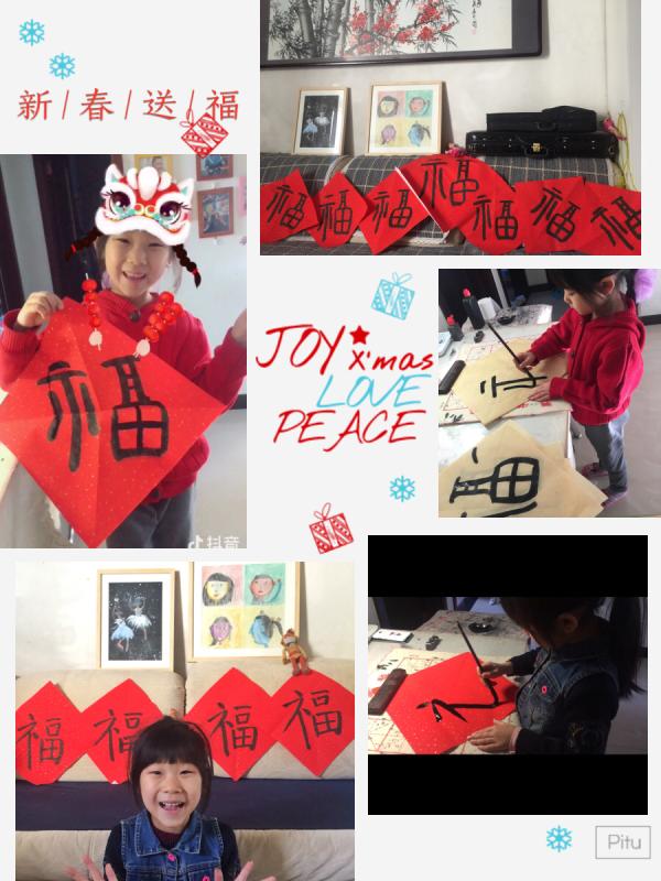 寒假正值春节期间,低年级孩子们根据自己的喜好和家庭活动,学写“福”字、剪窗花、做灯笼,了解节日文化,体验春节的民俗活动,寓学习于活动中,以手机将精彩的假期生活片段记录的形式完成作业。中高年级的孩子们通过阅读自己喜爱的美术画册、人物传记等课外书,认识了解一位画家、一幅名画,丰富了头脑开阔了眼界,以 “名画我推荐”手抄报的形式完成作业。下面我们来欣赏下假期生活的精彩瞬间吧。