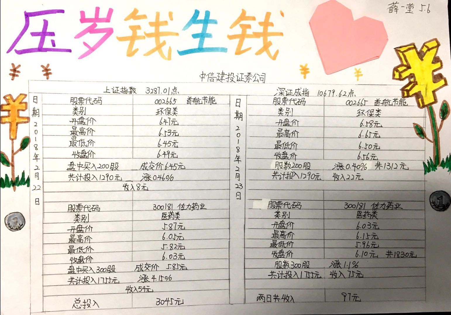 三、四、五年级数学组寒假特色作业是根据2018年狗年的生肖特点制作各具特色的日历,同时结合寒假走亲串友、外出旅游、压岁钱钱生钱等活动,巩固加强数学中的里程表知识、解决数学问题,真正做到“学数学用数学”。各具特色的优秀作业中,处处体现着老师们独具匠心的设计、家长们的积极配合和同学们的良好学习习惯。一幅幅内容丰富、图文并茂的手抄报展示了他们的实践成果。一幅幅精美的作品,展现了学生积极参与的态度和乐趣。在“压岁钱钱生钱”这项作业中,有的同学进行股票投资,有的同学进行银行理财产品的投资,有的同学利用手机软件进行短期贷款投资,还有的同学选择支付宝的余额宝进行存放。。。不论选择哪种方式的钱生钱,在这个过程中同学们都研究了利率以及风险投入等多方面的数学问题,并在手抄报中体现出这些过程,都在感叹数学真有用!!!