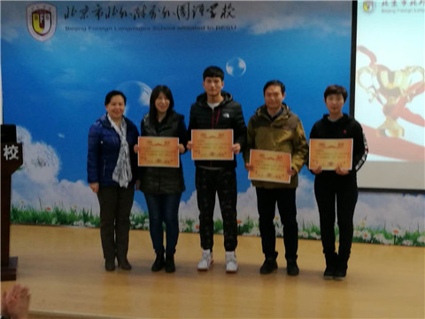 会议第二项,参会教师们观看了本学期里记录初中校区各项教育教学活动的视频短片,回顾了在特色建设、教师风采、学生发展情况等各项工作活动中所取得的优异成绩。伴随着激昂的乐曲,颁奖仪式拉开了序幕,王莉老师宣读了本学期全勤教师、优秀辅导教师、优秀课题组、教科研论文获奖教师、优秀新教师汇报课、优秀班主任、优秀教研组、优秀备课组、海淀区教科研种子教师的获奖名单,参会领导为获奖代表们颁奖并合影留念。