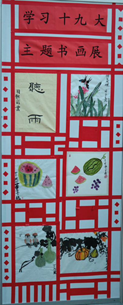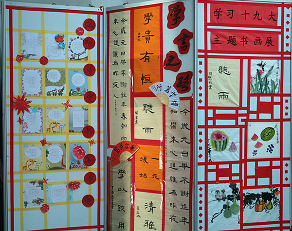 2018新年伊始,由我校小学部美术组举办的“学习贯彻十九大主题书画展”在小教楼一楼开展。