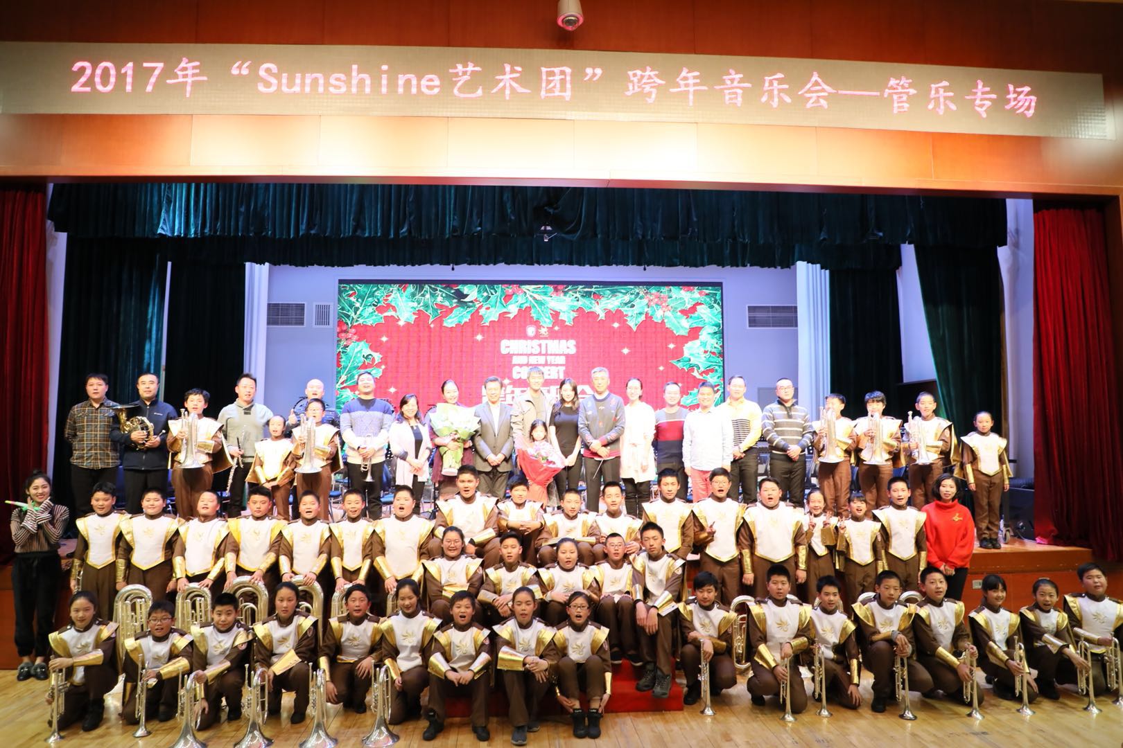 12月24日19:00艺术中心在国瑞厅举办“2017年‘Sunshine艺术团’跨年音乐会——管乐专场”。“Sunshine艺术团”行进管乐团的孩子们,精心准备了十余首经典乐曲为大家奉上一场视听盛宴。行进管乐,是一门集体艺术,长期不懈的训练,本身就是一种磨练意志的途径,再加上团队协作与配合,更有效培养了孩子们的合作意识、组织能力以及责任心等等,这恰恰是当今教育最应当着力的重心。这也是我们"sunshine艺术团"大力发展行进管乐团的动因,我们希望孩子们不仅能够掌握一项演奏技能,更能够获得身体素质以及心理素质的强化与提高,同时在团队作业的过程中,实现自我价值与团队合作的包容与契合,这也高度符合了我们大力发展美育的宗旨。我们虽然没有宽阔的场地来展示行进管乐的动感与震撼,但我们优秀的乐手们一样可以坐下来,用手中的乐器,上演一台无与伦比的室内音乐会。此次音乐会取得圆满成功,离不开各位校领导的支持、各位家长朋友们的理解与配合以及我们专家老师团队的辛苦付出。让我们一起重温跨年音乐会的精彩瞬间吧!