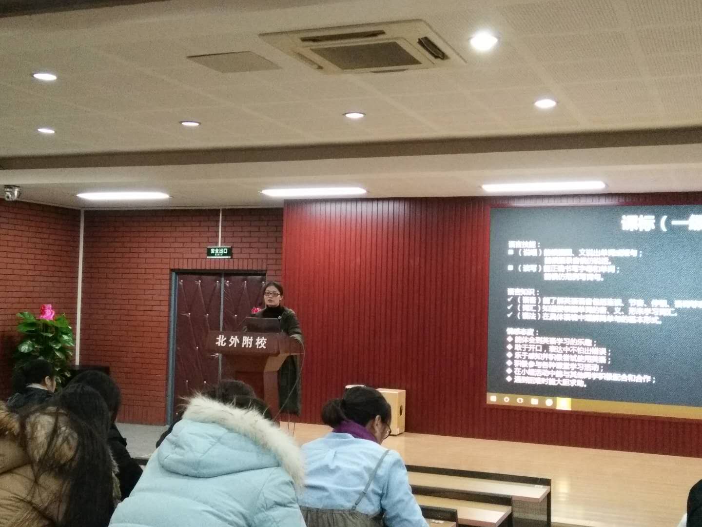 2018年1月5日本周五下午,北外附校小学部所有教师在二阶进行本学期教师进修经验分享交流会,本次大会由刘蕾老师主持,并分别由英、科、体、美、音乐老师进行精彩的经验分享。