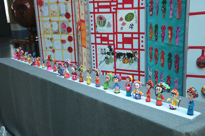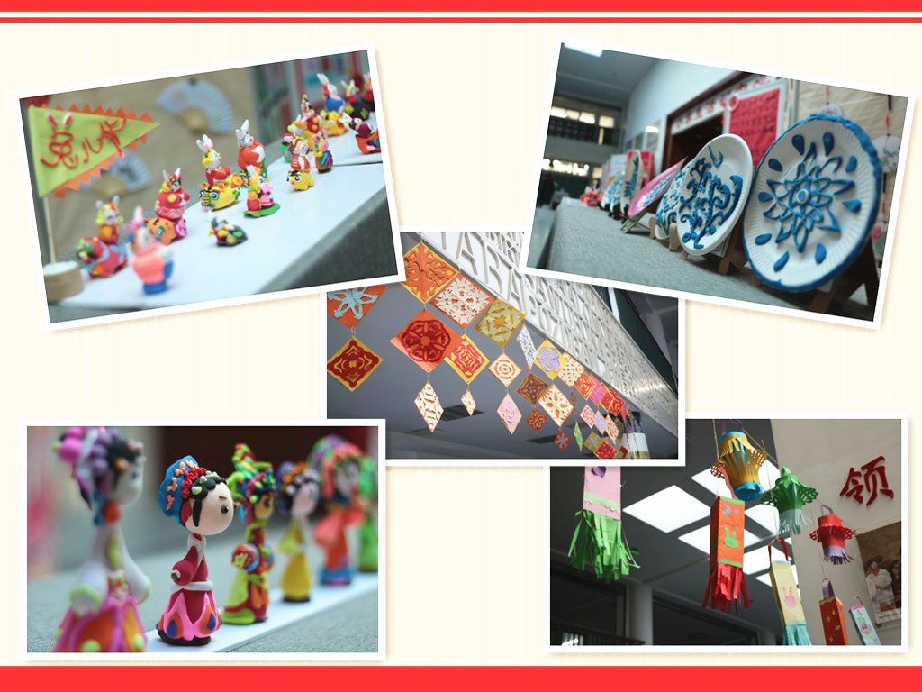 这次展览中就藏着具有中华独特风格的传统艺术作品,你发现了吗?它们都是我们小学生在美术课堂上巧妙构思,精心创作而成。整个画展创作历时一个多月,其中也有每一位美术老师的辛勤教学和劳动。这里有扇面画、皮影、青花瓷盘、门笺、春联、窗花、传统布艺、灯笼、马勺、京剧人物、兔儿爷、藏书票、国画、沙画、衍纸等等我们中国人的传统艺术作品。快去认识认识它们吧!