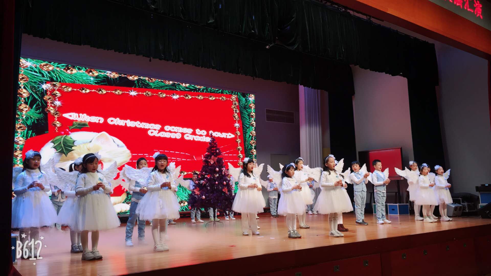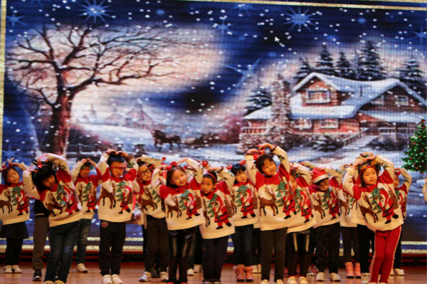 一年级的10个班级选取的每一首英文歌曲都很欢快、经典。一年级一班:Frosty The Snowman,二班:Jingle Bell Rock,三班:Silent Night, 四班:Decorate the Christmas Tree, 五班:SantaClausis coming to town...孩子们用童稚的原声投入地演唱着每一首歌,那美妙音色萦绕在耳畔,打动着在场的每一位听众。