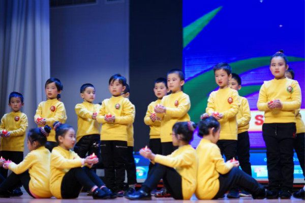 一年级的孩子们年龄虽小,但瞧瞧他们在舞台上有模有样,精神头十足,一点不逊色于高年级的大哥哥大姐姐。他们穿着节日盛装,有唱有跳,童趣尽显,孩子们脸上溢满灿烂的笑容,他们仿佛就是舞台上最美的仙子和精灵,在庆祝崭新一年的到来。