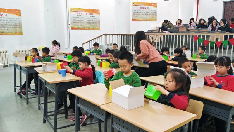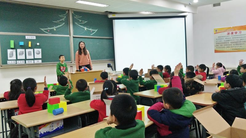 罗老师的课上通过一系列的活动——看一看、摸一摸、立一立、滚一滚、分类,让学生认识了四种新的立体图形,切实培养了学生的几何直观。除此之外,课堂还穿插着丰富多彩的游戏活动,学生甚是欢喜。