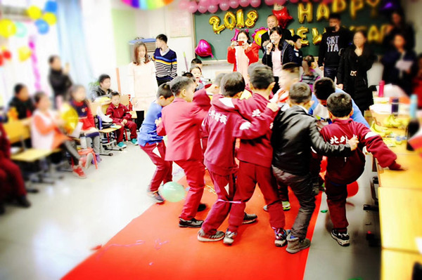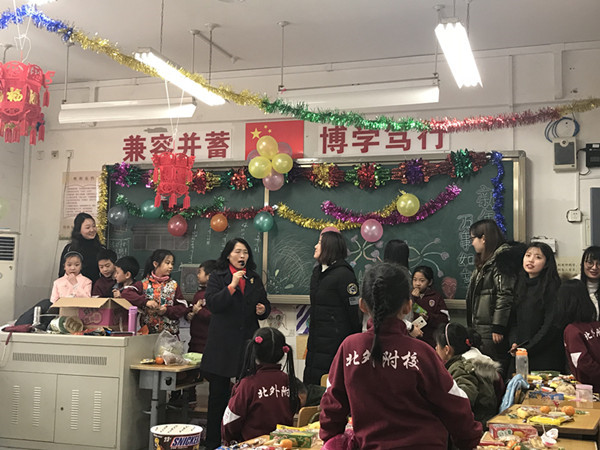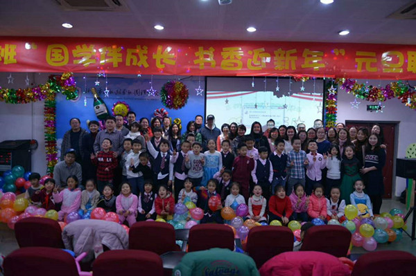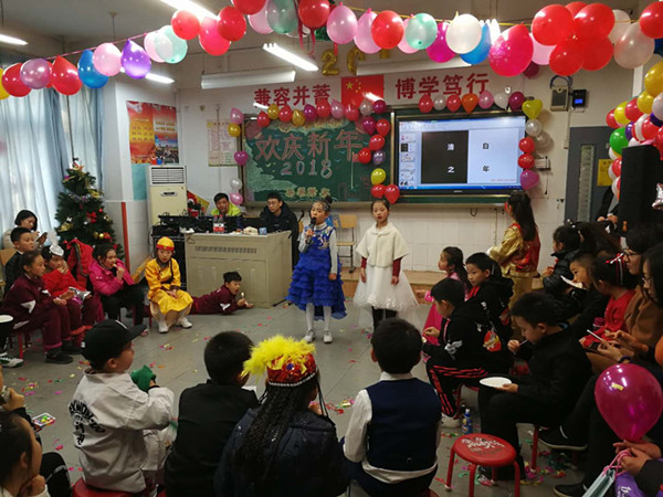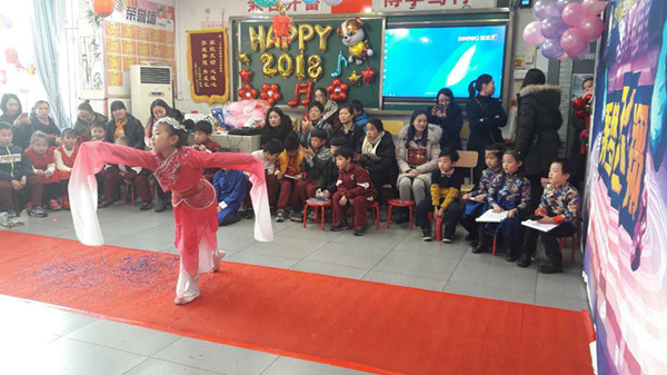 2017年12月28日下午,在各班教室、学校一阶,二年级各班家长与师生齐聚一堂,搞了隆重、热烈、快乐、祥和的新年联欢会。