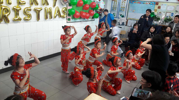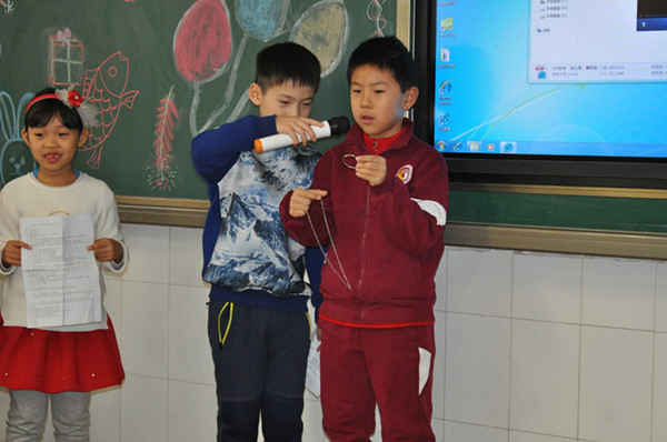 二(1)班联欢主题“收获快乐,祝福 。同学们充分展示了各自的文艺才华,表演了唱歌、朗诵,自导、自演了小品、舞蹈等各具特色的节目。同学们许下新年愿望,一同吹蜡烛吃蛋糕迎接新年。二(2)班联欢会主题是“国学伴成长、书香迎新春”,班级学生根据历史的沿革分为了“华夏”、“盛世”、“隆盛”、“传承”四个组,孩子们的节目大部分以弘扬经典文化为主,他们通过活动了解了中国的发展历史,增加了爱国情感,培养了读书兴趣。二(4)班举行了“不一样的我,一样的精彩”主题联欢会,这是孩子们展示自我、享受活动乐趣的日子。学生、老师、家长参与其中、观摩了联欢活动,其乐融融。二(5)班联欢主题:感恩父母、感恩老师,收获快乐,幸福成长。二(6)班,开展了以“乘梦飞翔”为主题的新年联欢会活动。老师们,孩子们,家长们欢聚一堂,面对这人生崭新的一页,激情与欢乐相逢,愿望与梦想齐飞!二(7)班联欢会上,学校艺术顾问花之悦老师现场高歌一曲《我爱你中国》。为班级联欢会增色。