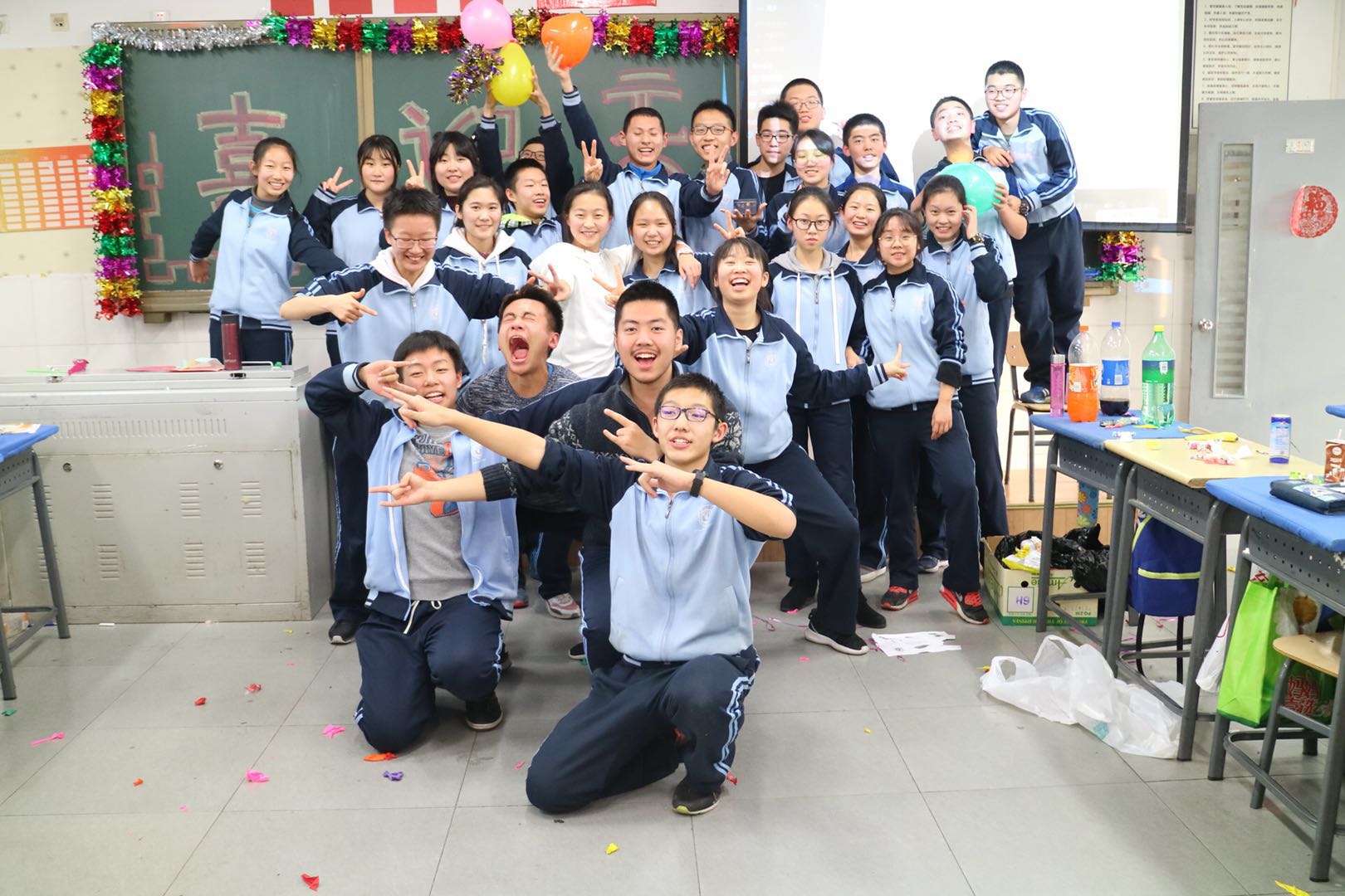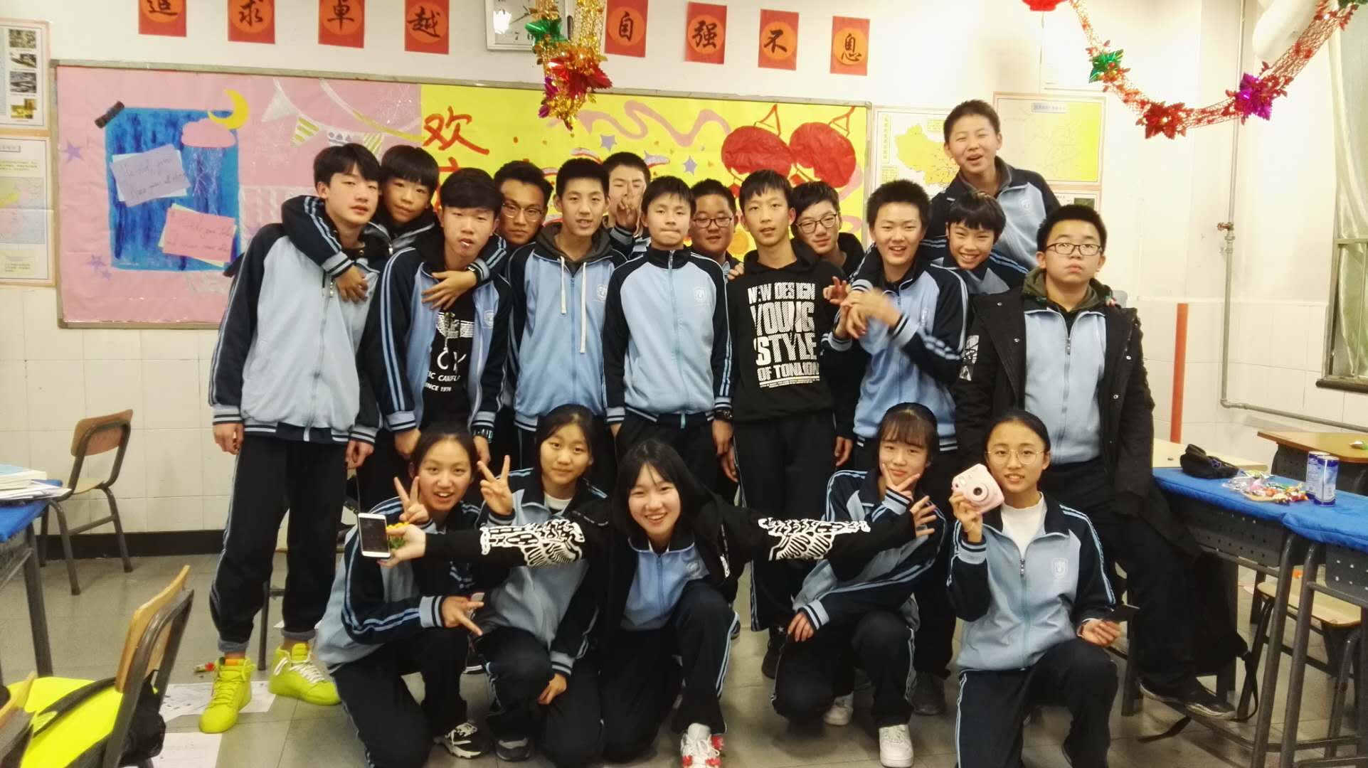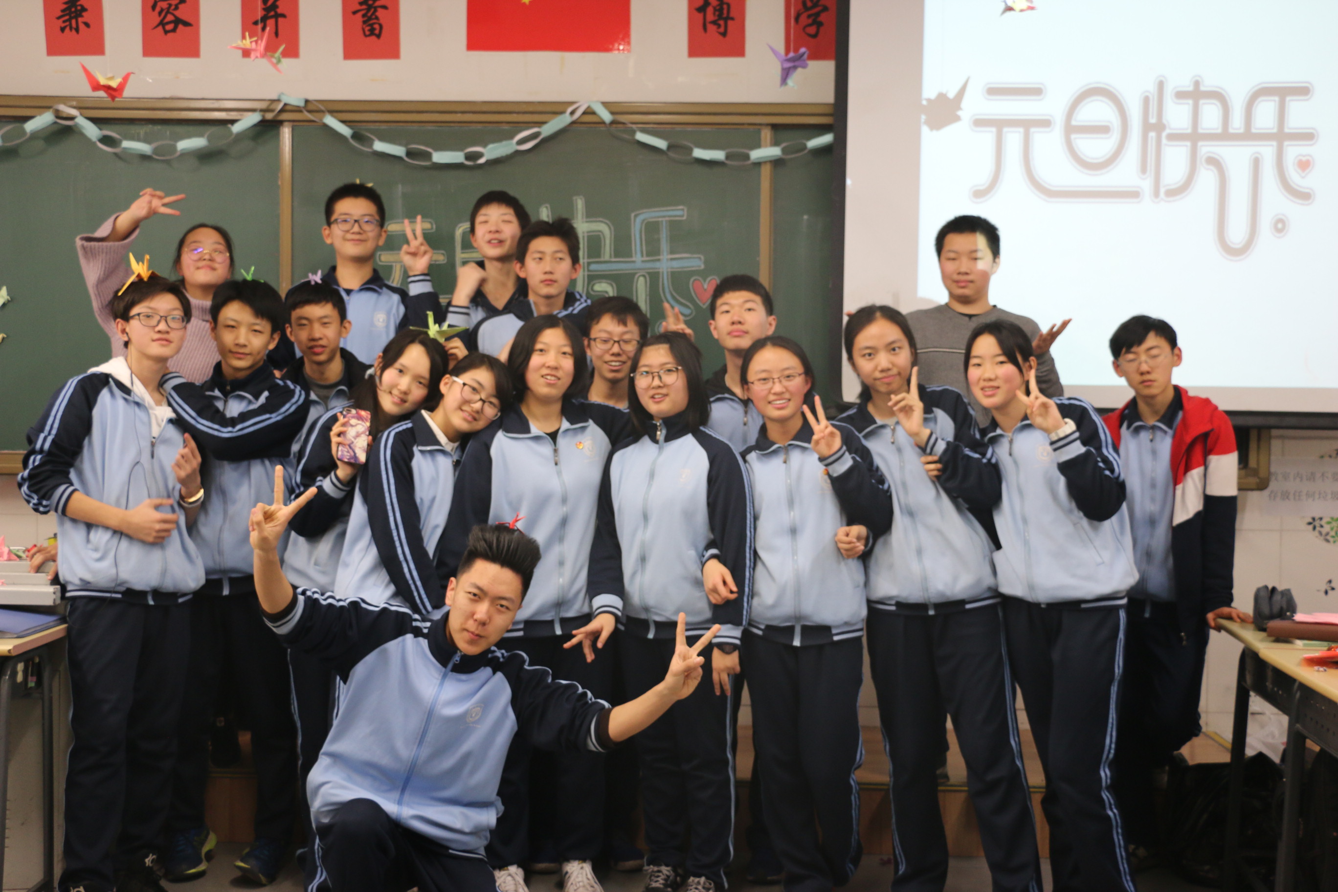 迎着新年的曙光,带着真诚的祝福,2017年12月29日下午,我校初三年级在各个班级隆重举行了欢庆2018年元旦联欢活动。
