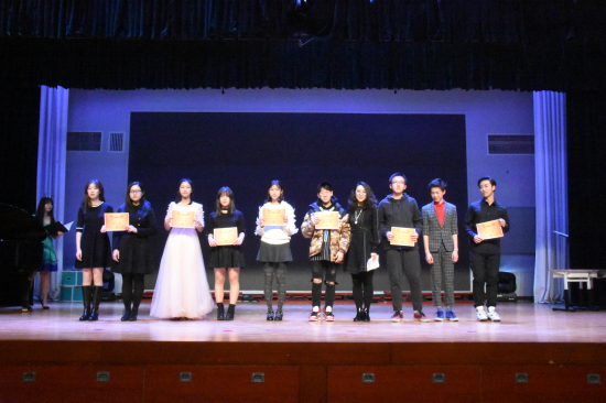 在表演间歇穿插的抽奖环节调动了全场的气氛,在主持人的带领下,同学们积极踊跃的参加使这个环节十分成功。选手表演完毕后,高二(3)班夏凡和高中合唱团作为助唱嘉宾登场,为大家分别带来了钢琴独奏和《天空之城》。学生会各个部门的部长一齐登场,合唱了北外附校校歌,展现了本届学生会干部的风采。随后,主持人宣布获奖结果,音乐社乐队最终以一首经典歌曲《Yesterday once more》获得一等奖,高一(6)班张天祎的说唱《我想》获得二等奖,高一(6)班喻德荣和高一(1)班杨怿同学的《差不多先生》获得三等奖。