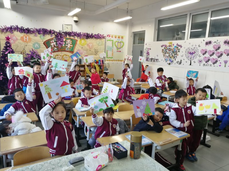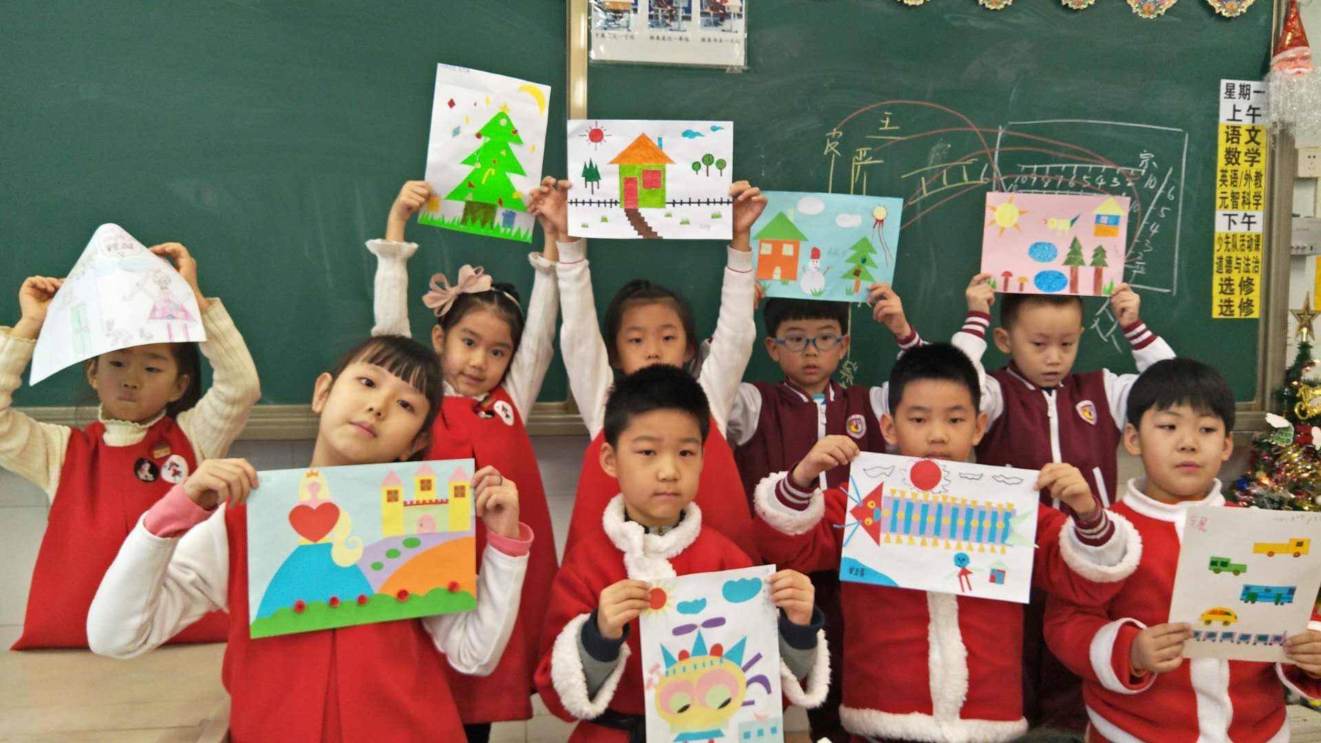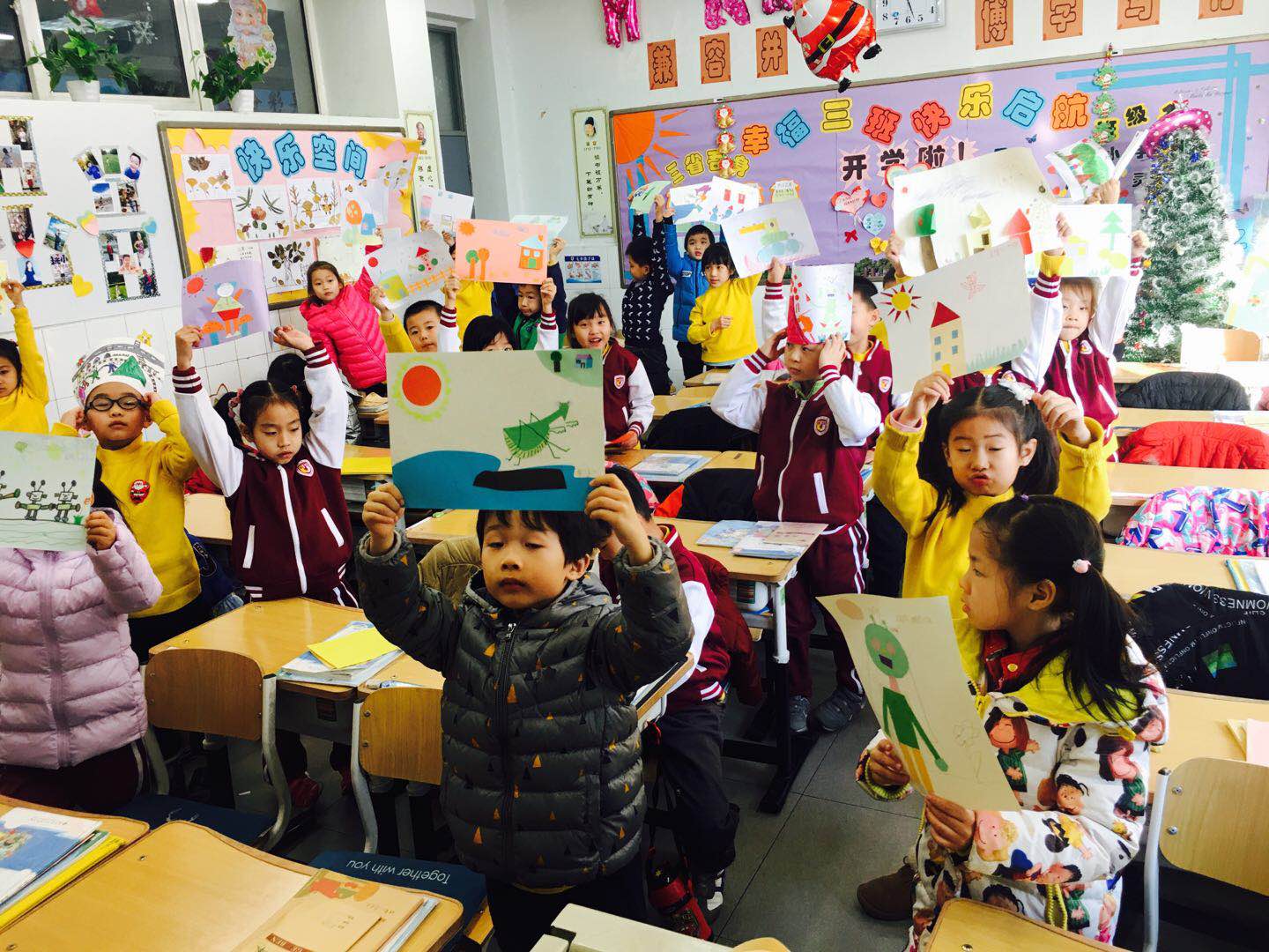 为了让学生能够更深刻的认识平面图形,一年级数学组让孩子们利用周末时间用纸剪出大小不同的长方形、正方形等各种图形,拼出一幅美丽的图画。