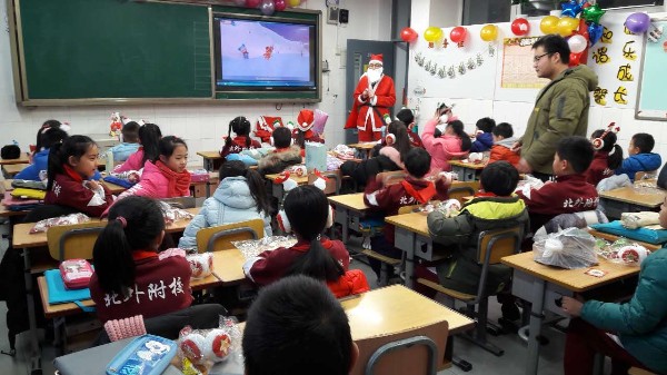伴随着“Jingle Bells”的悦耳歌声,充满着幸福、快乐及童话般色彩的节日--圣诞节来到了。12月25日圣诞节当天,北外附校小学部开展了以“欢度圣诞 快乐童年”为主题的圣诞欢庆活动。孩子们和老师们共同度过了一个快乐有意义的圣诞节。
