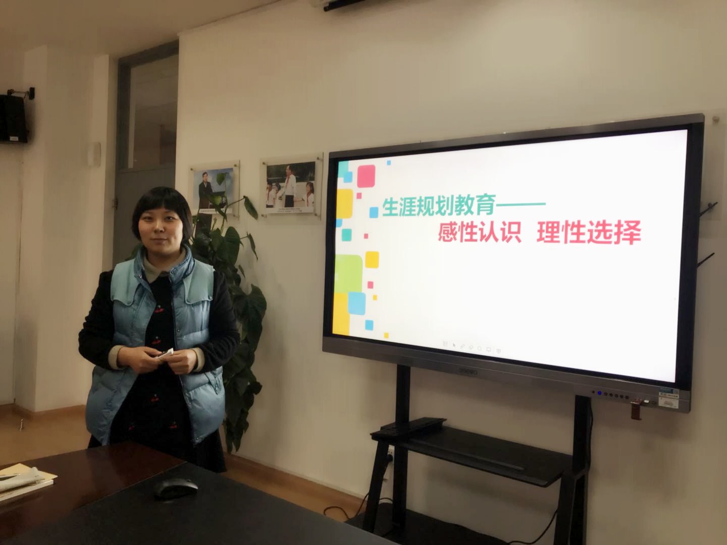 12月14日下午,我校高中班主任及班主任工作室成员在209会议室开展主题为“感性认识,理性选择”的学生生涯规划教育培训会。会议由高一(3)班班主任郭晓红主讲。