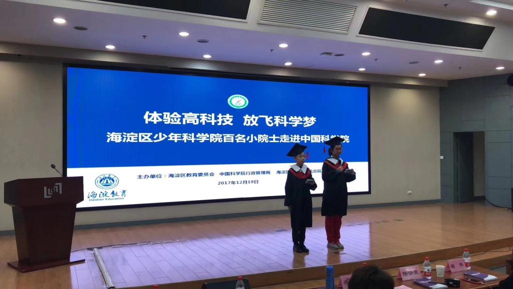 为落实海淀区少年科学院“七个一工程”中“落实一次走进中科院科研院所”的要求,12月19日下午,海淀区少年科学院组织了百名小院士以及各校科技领域指导教师与科学院院士共同走进中国科学院文献情报中心参观“率先行动 砥砺奋进——“十八大”以来中国科学院创新成果展”。海淀区首届少年科学院小院士我校初三(3)班林楷钧同学以及初中科技创新工作坊潘铎轩老师参与此次活动。