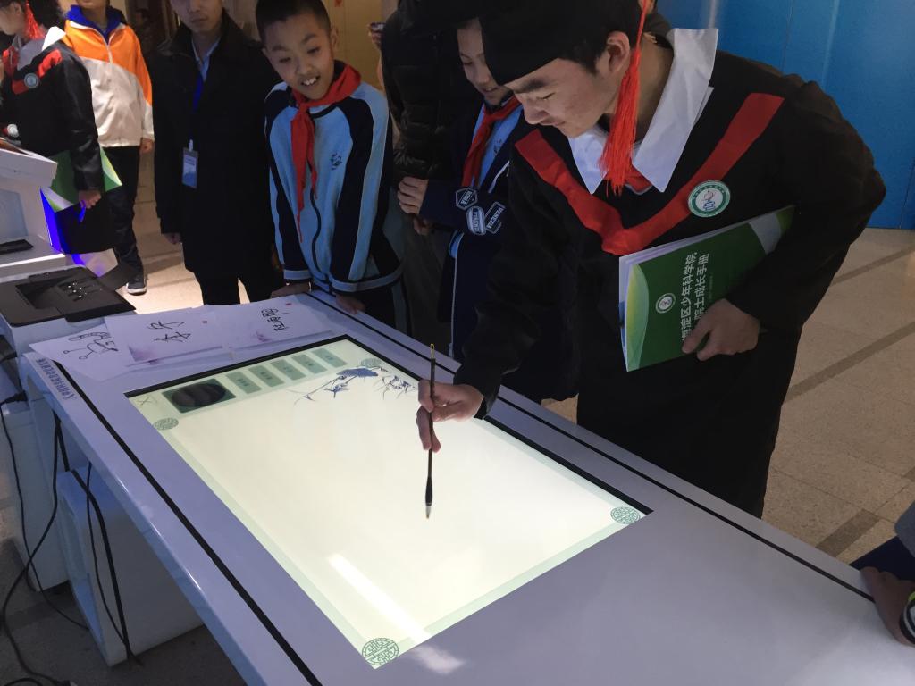 在“面向世界科技前沿”展厅小院士们参观了南仁东老先生作为首席科学家、总工程师建设的世界领先的中国“天眼”FAST、“第三极环境”国际计划、40K以上铁基高温超导体、二维原子晶体材料、“幽灵粒子”等顶尖的技术成果等;“面向国家重大需求”展厅分为“深空、深海和深蓝”三个部分,在这里大家了解到了中科院在航天工程、探月工程、北斗卫星导航系统以及海洋万米深渊科考等方面的突出成果;“面向国民经济主战场”展厅,主要展出的是各研究所在围绕城镇化和人口健康、能源结构优化、制造业转型升级、农业发展方式转变、和生态文明建设等5个科技促进经济社会发展的重点服务领域取得的成果。每到之处讲解员都会细致讲解,小院士们也由衷地为我国科技创新领域取得的重大成果感到自豪。
