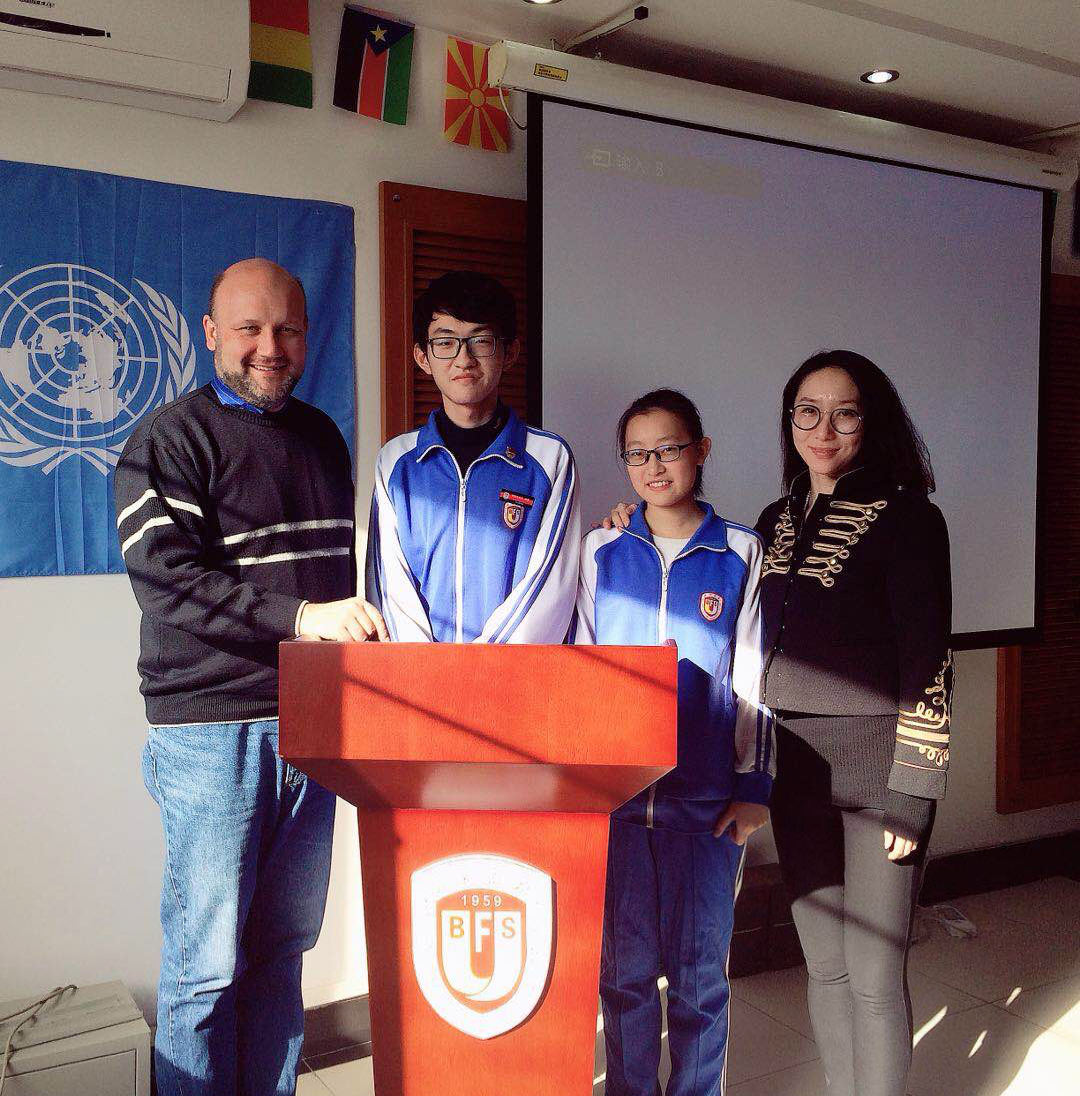 本次考试分为两天进行,通过准备、自由演讲、主题演讲以及问题回答等环节,我校学生均取得优异成绩,顺利通过考试。考试结束之后,我校高中校长高雁鸣与Wolfrum先生就我校德语项目发展和学生出口留学问题进行了交流。