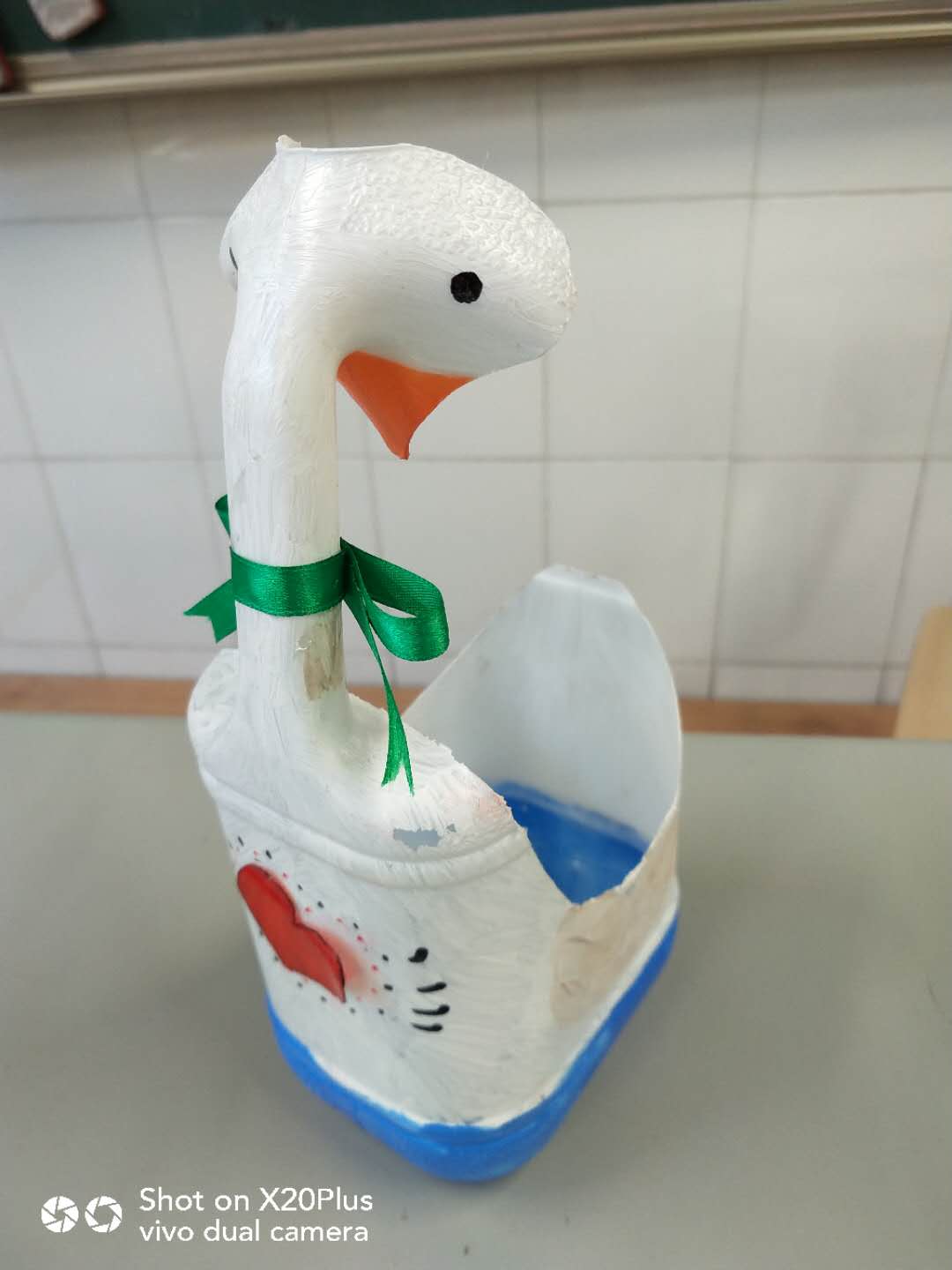 “心灵手巧,变废为宝”活动内容来源于生活,通过这次活动的开展,同学们学会动手动脑,让废旧物品焕发新的生机,增强学生们的环保意识的同时,也是实践十九大精神的一次崭新尝试。在“垃圾”到“作品”变废为宝的过程中,同学们不断创新、大胆实践,既培养了同学们的观察能力、推理能力和组合创新能力,又在潜移默化中提高了他们的审美情趣,使学生们学会发现美,懂得欣赏美,勇于创造美。