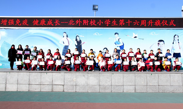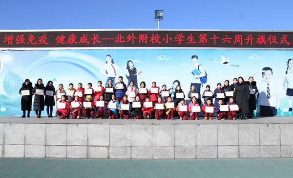 12月15日,我校举行小学生第16周升旗仪式,二年级5班的五位同学进行了主题为“强化免疫,健康成长”国旗下讲话。