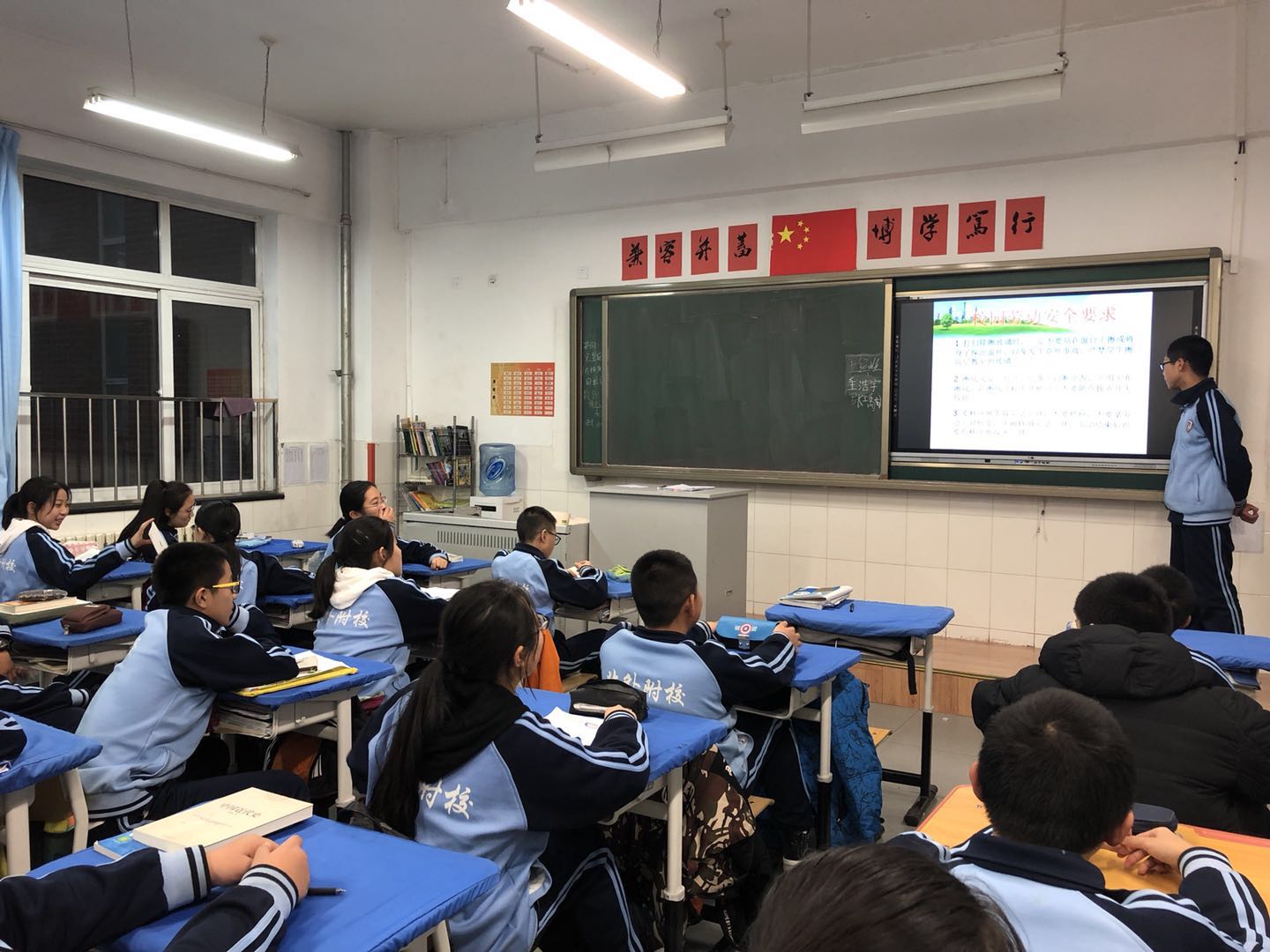 安全教育大于天,为了提高我校学生的安全防范意识,预防学生人身、财产、交通等安全事故发生,贯彻“安全第一”的方针,克服麻痹松懈思想和侥幸心理,做好学生安全教育工作,维护校园安全稳定,初二年级各班在2017年12月11日下午班会课开展了学生安全教育主题班会。