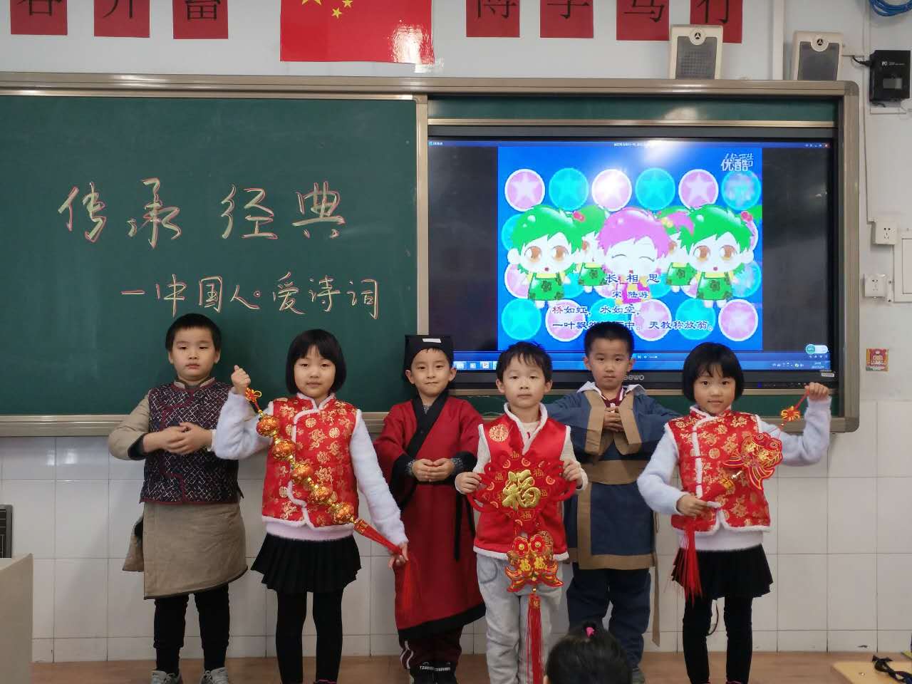 2017年12月4日小学一年级举行了“古诗词游园”活动,此次活动由一年级全体学生、班主任、语文老师参加,以班级为单位。活动内容以开学以来学习的诗词及清河学区题库为主,历经一节课的展示,各班最终圆满结束。