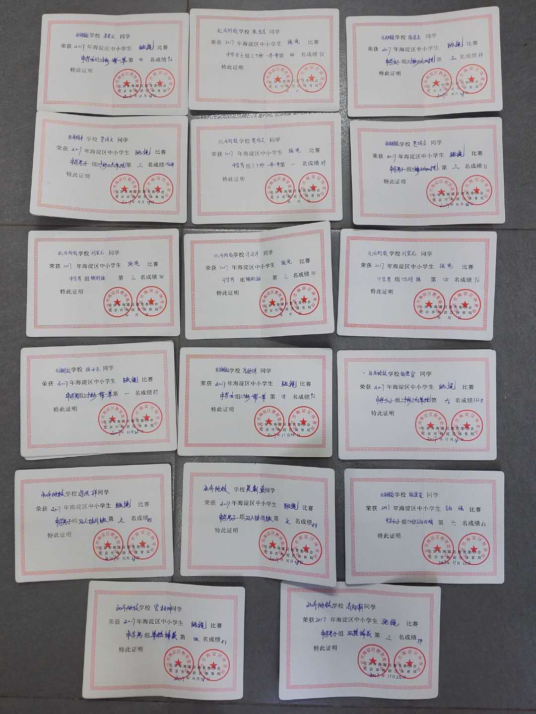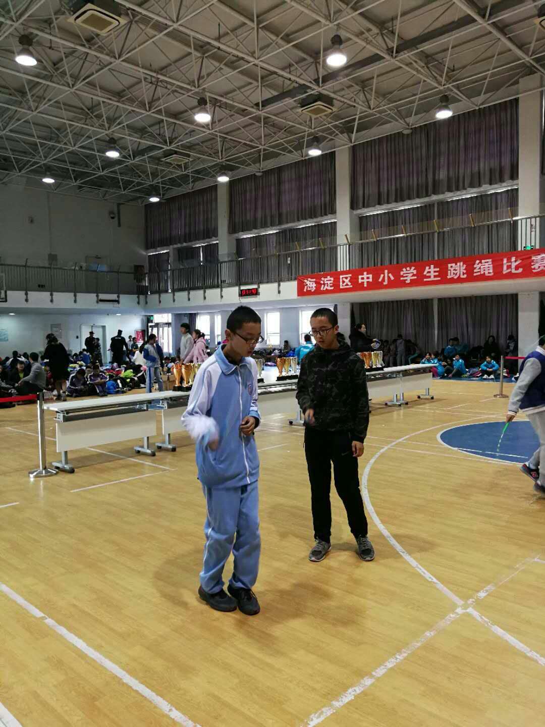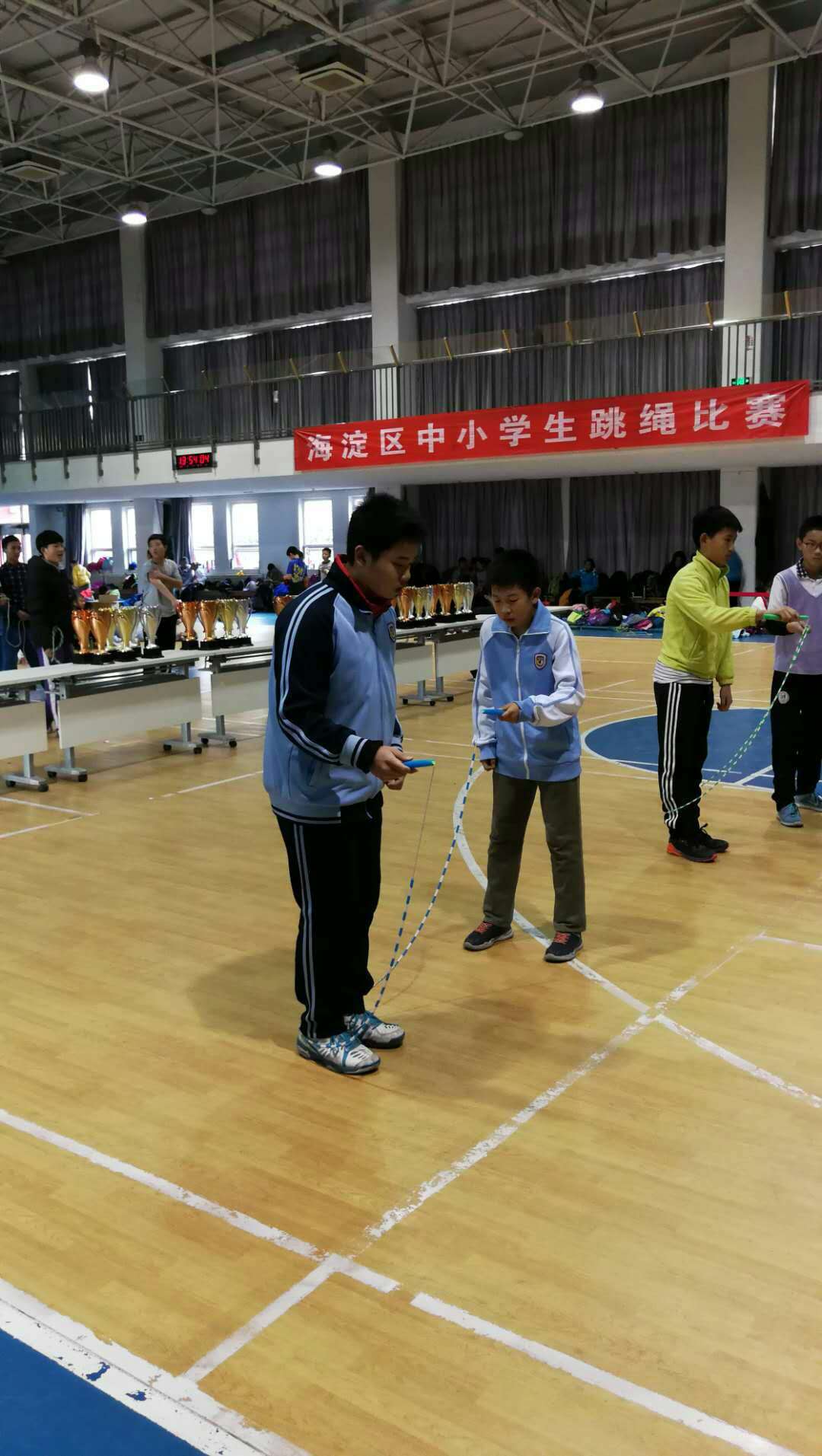 2017年11月25日,为期两天的海淀区中小学生跳绳比赛在中关村二小(百旺校区)隆重举行,一千多名学生参加比赛。本次比赛由海淀区教委、区体育局主办,海淀区中小学体育运动促进中心承办。我校初中跳绳队在于颖老师和宗旭阳老师的带领下,参加了第一天竞速项目的比赛,我校队员在比赛中团结协作,奋力拼搏,在多个项目中取得了优异的成绩,夺得多块奖牌。