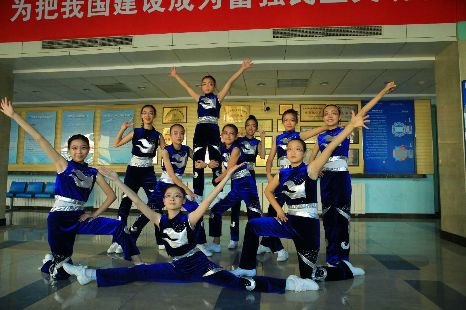 初中校健美操队共有11名小队员,于每周一中午和周二下午的校本课程时间进行训练,队员们顶着较重的学习压力,用炙热的情怀积极的参与训练,享受着健美操这项充满活力的运动,体验与之而来的幸福和喜悦。尤其是在临赛备战期间,队员们更是利用午休和放学时间认真的进行加练,各项技术动作愈发成熟,训练效果在比赛中得到一一体现。教练员根据学生的表现能力与动作标准制定了适合学生自身的比赛项目及动作。在不断的练习当中,队员们的身体素质得到了明显的提高,培养了她们积极乐观的开朗性格和上进心态。