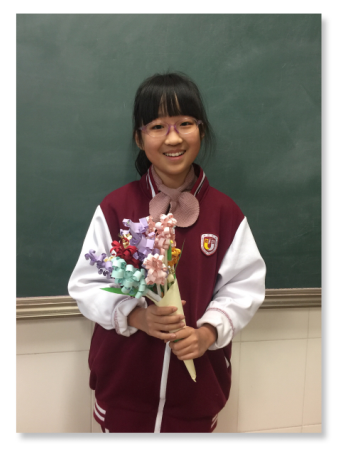 孩子们每人做一支薰衣草,全班同学一起做成了一束薰衣草送给自己敬爱的老师,并送上了美好的祝福。