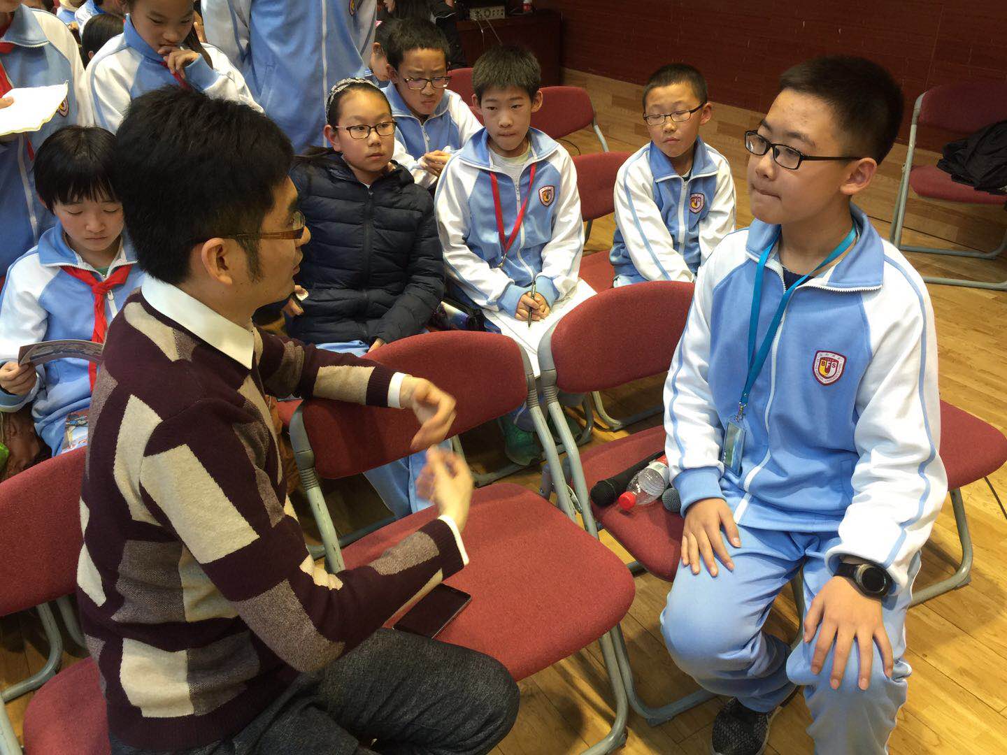本次活动共分为“天气预报制作大揭秘”、“气象灾害防御、预警信息知识知多少”、“预警、天气知识大比拼”和“争当天气小主播”四部分。活动现场,中国气象局新闻联播天气预报主持人张泰源、央视体育频道天气预报主持人孙凡迪、央视七套天气预报主持人孔德俏、气象首席分析师杨继国、信欣通过与同学互相提问的方式,帮助学生们了解天气相关知识,并通过主持人签名邮册、气象纪念品等礼品的发放,鼓励引导这些孩子们在与主持人的互动中,学习到防灾自救的知识。最后,气象主播们带领初高中的同学们在临时虚拟演播室内让学生们体验了一把天气预报主播瘾。活动期间,同学们认真听讲,踊跃发问,积极同各位气象主播互动,了解关于气象的各方面知识。整个礼堂欢声笑语,气氛热烈,同学们在主播门幽默风趣的语言中学到了知识,开拓了视野。