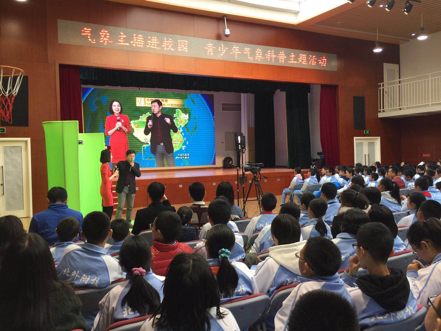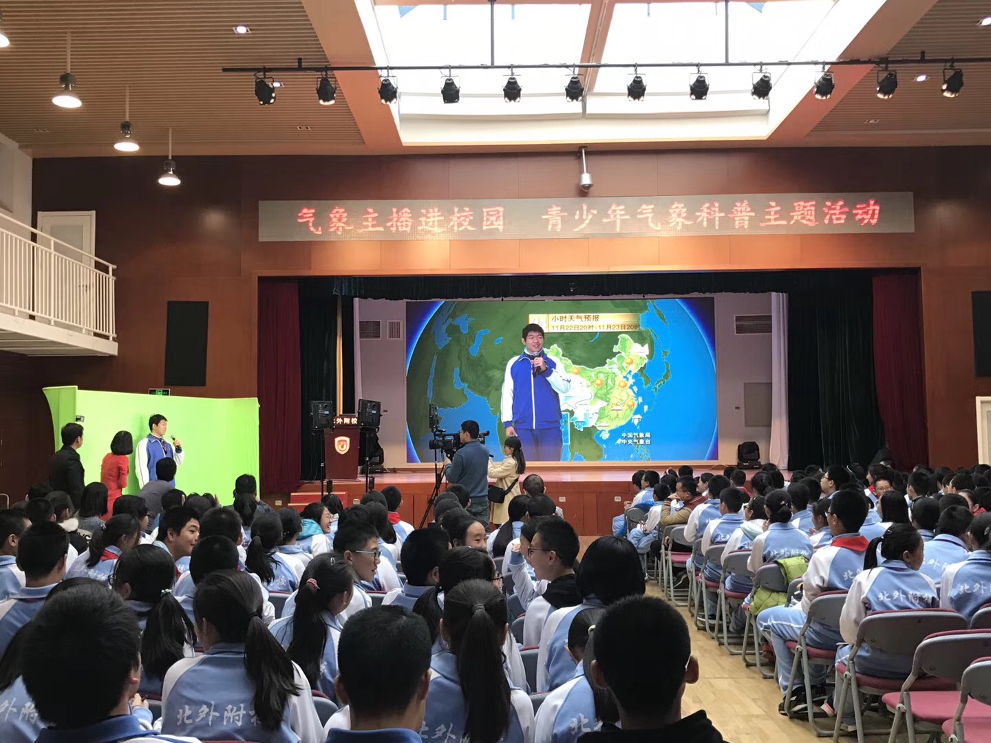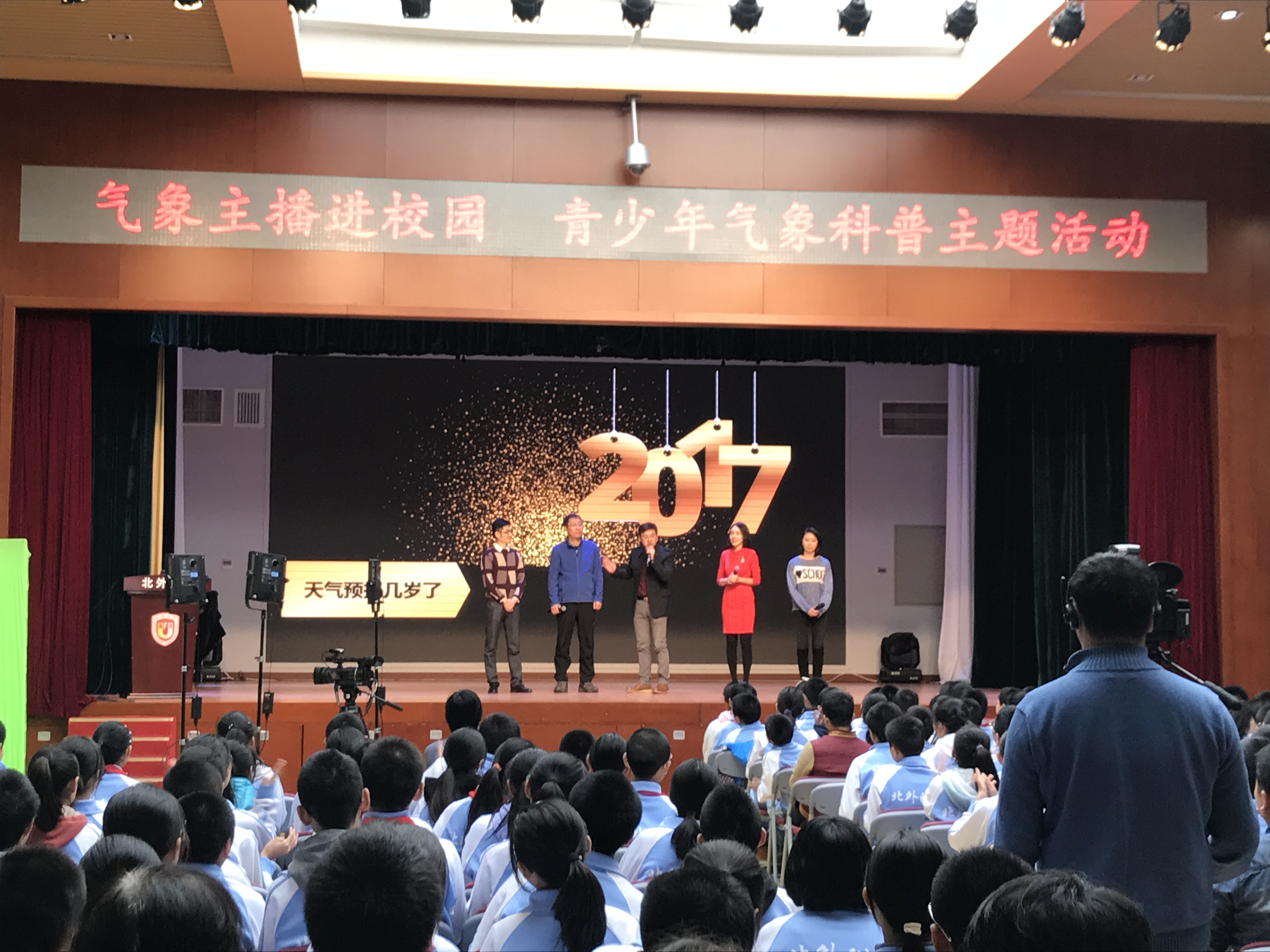经团市委中少部推荐,我校团委联手中国气象局公共服务中心共同举办“2017年气象主播进校园 青少年气象科普”主题活动。初一、高一年级师生参加了此次活动。