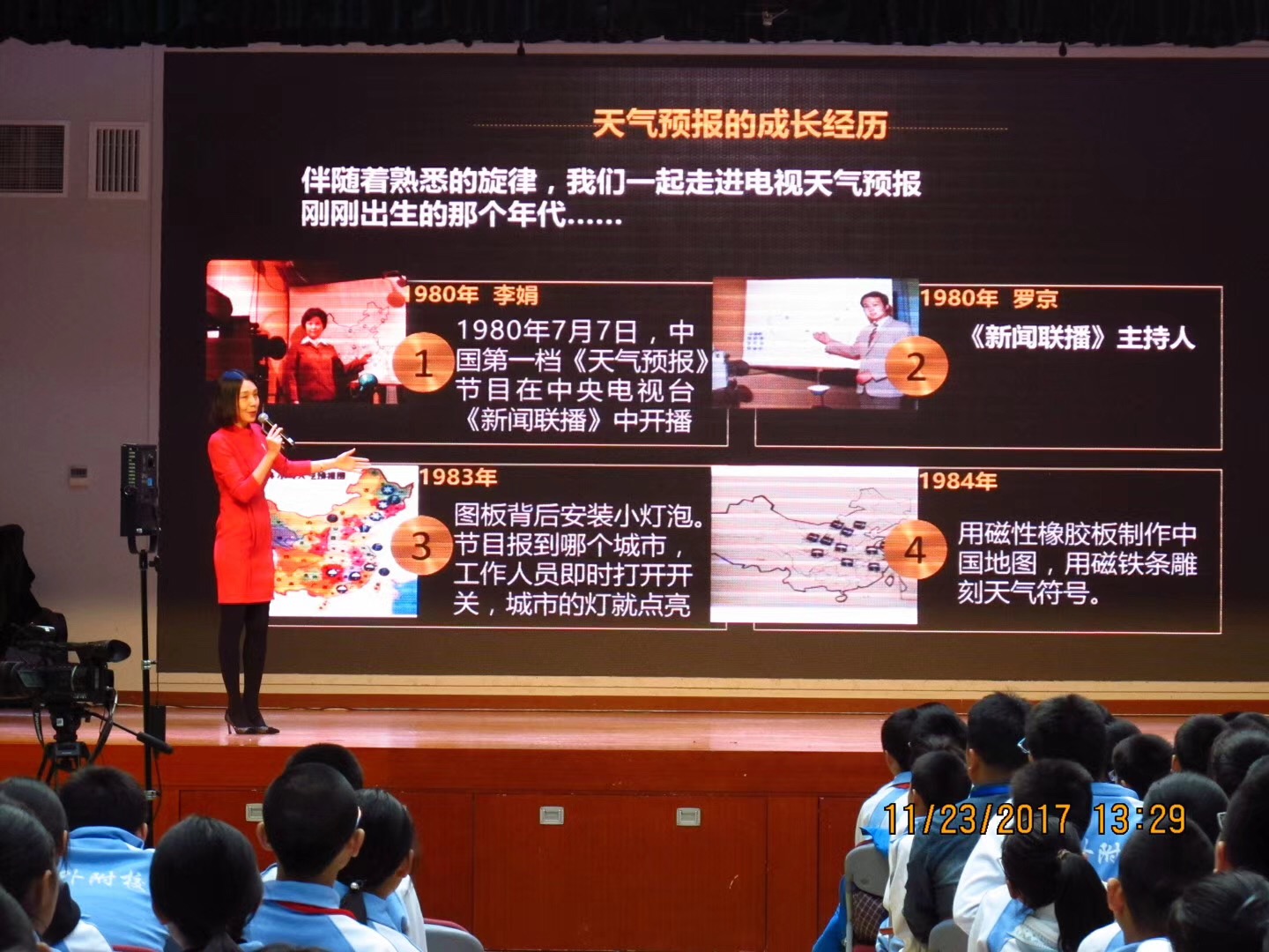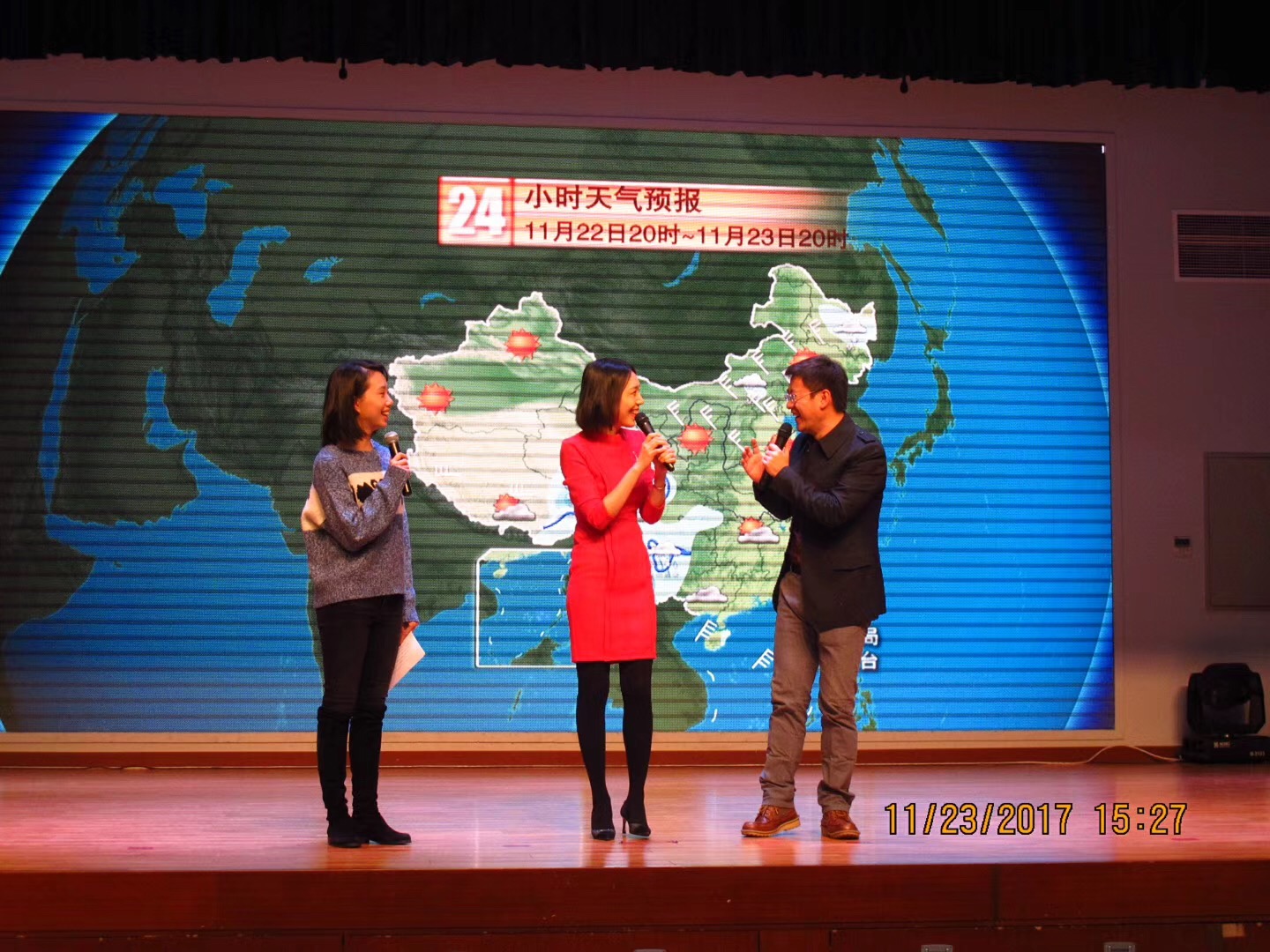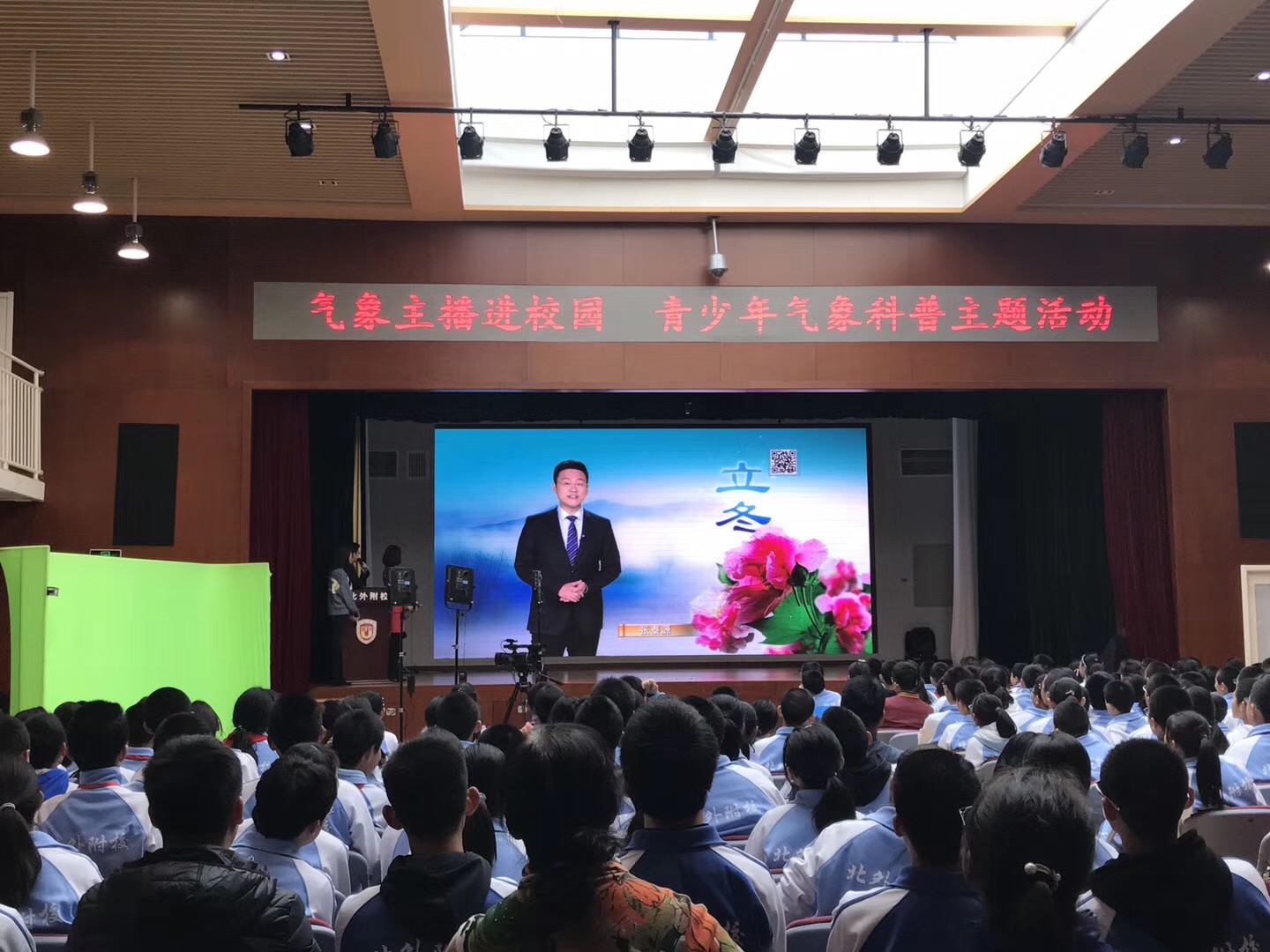 经团市委中少部推荐,我校团委联手中国气象局公共服务中心共同举办“2017年气象主播进校园 青少年气象科普”主题活动。初一、高一年级师生参加了此次活动。