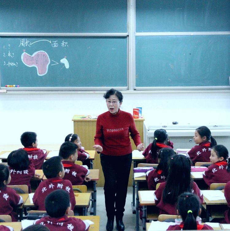 吴正宪老师赞许赵阳老师为研究型教师,对"脑中构图多边形面积探索的过程"这一环节给予很高的评价,认为整个教学环节的设计逻辑性很强,学生的思维被紧紧抓牢,学生之间的交流与质疑自然而又有深度。学生的收获不仅仅是某个知识点的提升,而是将知识与思想的整合与迁移。同时,对北外附校小学数学教研组这个团队的的研究能力给予充分的肯定,并提出了教研的发展方向。