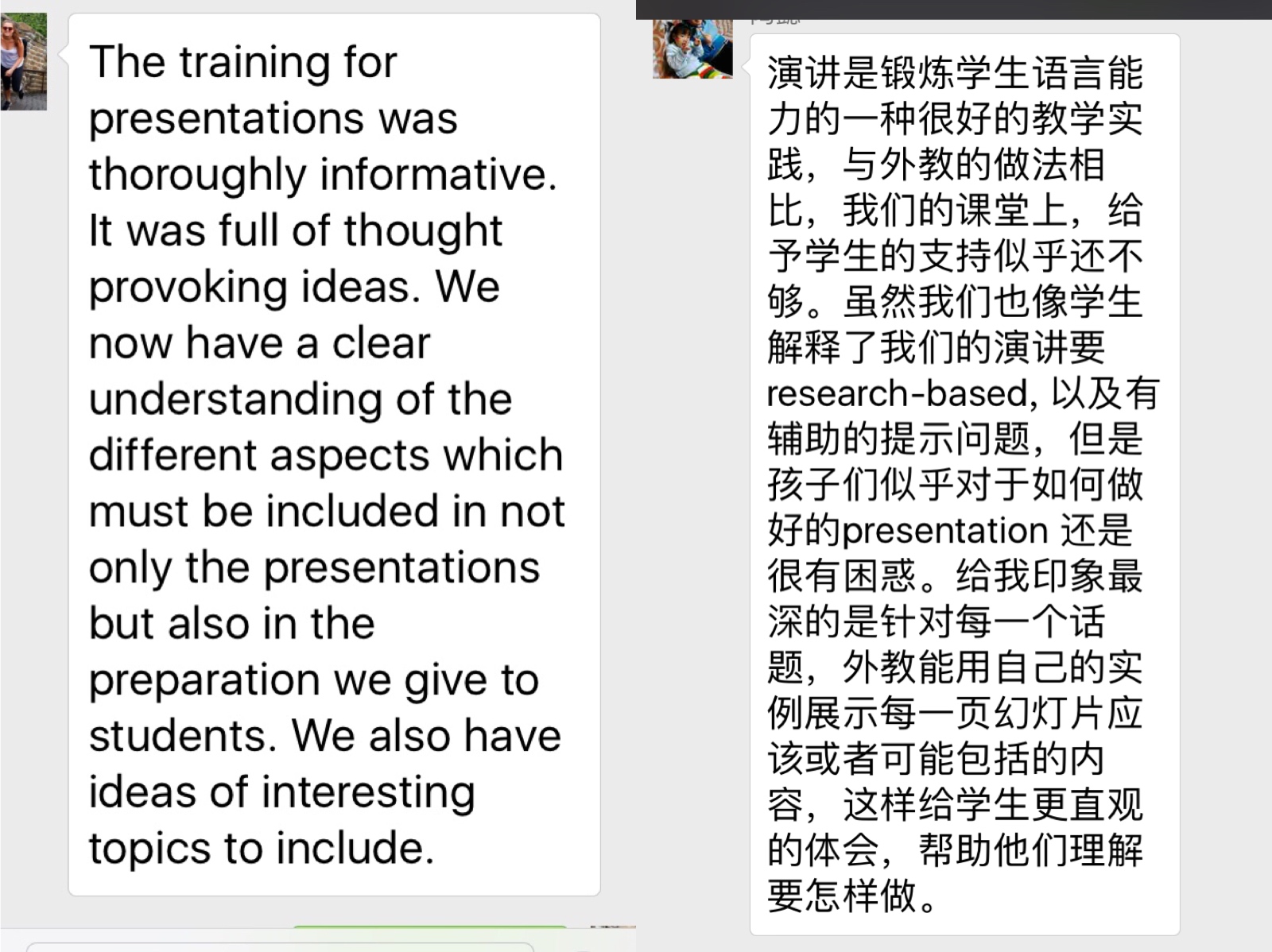 中外教师分享自己本次活动的心得体会