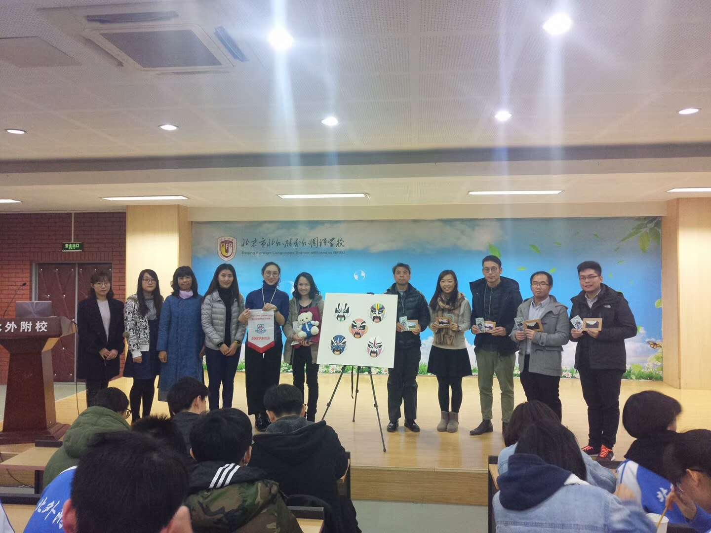 首先,校团委书记、高中德育主任刘志欣致欢迎词,并对我校进行了介绍,并向来访师生赠送了我校JA社团自主创业产品——校服熊、校服钥匙链和校园明信片。
