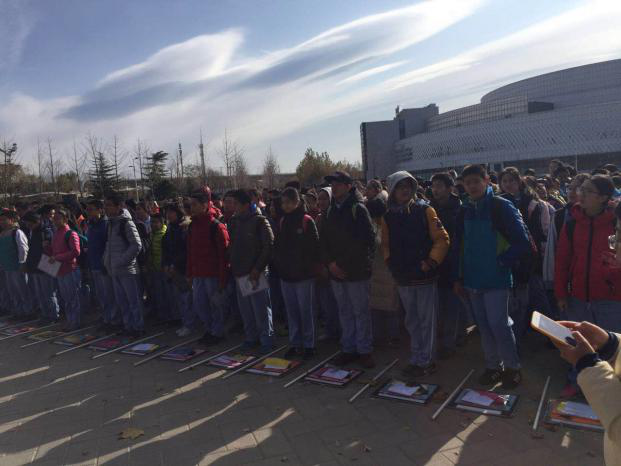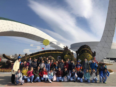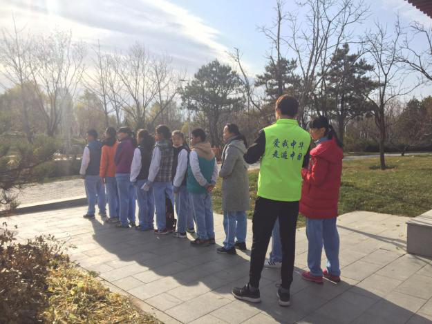 随后,大家进入世博园继续今天的研学活动。起队名、拼中国地图、一起做中国人的手语展示,在教练组织的一系列热身活动过后,以小组为单位的寻宝活动开始了。带着“天使之吻、长者祝福、捡拾不同颜色的垃圾”任务,同学们徜徉在各具特色的建筑美景中。“你做任务、我寻找景点”,只见各组同学分工有序,任务紧锣密鼓的完成着。寒风瑟瑟,抵挡不住一颗好学的心;饥肠辘辘,精力却被精美的园林建筑吸引。欢声笑语萦绕在耳旁,各省建筑印在脑海里,在欣赏学习之余,更能从中感受到先民对理想生活在空间和精神世界的向往和追求,受到中华民族“道法自然”、“天人合一”哲学思想的熏陶。