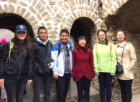 十点左右,北外附校教师一行人到达重阳登高的目的地——八达岭古长城景区。这段古长城是在原来残破坍塌、野草丛生的基础上进行了一种尽可能还原和维持原貌的加固与补坍,使得这段蜿蜒在崇山峻岭间的古长城将那份历史沧桑和厚重感保留下来。山中风力甚猛,此处游人并不很多,而老师们的热情依然高涨。下车后稍微休整就纷纷结伴前行。