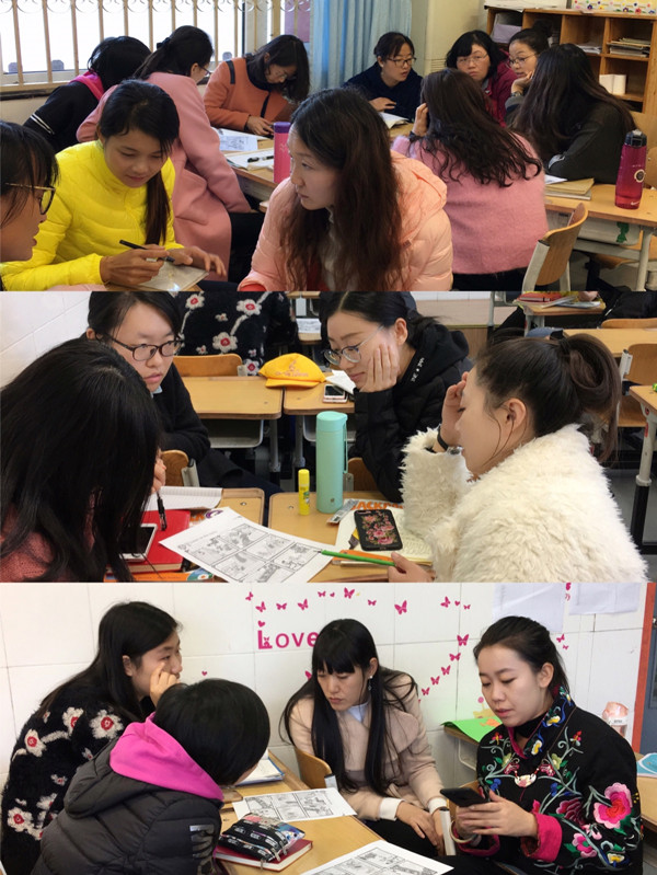 此次教研活动有两个环节。环节一,杨老师和李老师就期中练习前后的工作进行了部署,提到期中练习后要以备课组为单位及时总结分析教学中的经验和不足。环节二,李老师和杨老师以刘振敏老师Kid’s Box 2第二单元故事公开课为例带领所有老师进行了基于英语阅读课“深度学习英语课堂“为主题的再思考。英语老师以小组讨论的形式认真思考了怎样在故事阅读课上设计深度学习活动,并且讨论了自己会怎么去设计这样一节故事课,随后各年级老师代表踊跃分享了自己的想法。党楠老师提到可以利用图片环游提炼出每单元的关键词形成本课的思维导图,以培养学生的逻辑思维能力;肖冰老师提到可以通过在黑板板书上呈现真实文具来还原故事的真实情境,并且在本课结束时引导学生明白吃铅笔对身体有害,帮助个别孩子改掉吃铅笔的不良习惯。汤叶青老师提到在故事讲解时应设置悬念来激发学生的阅读兴趣,通过设置有梯度的听力活动来促进学生对故事的理解。杨老师高度评价了此次教研活动的价值和意义。