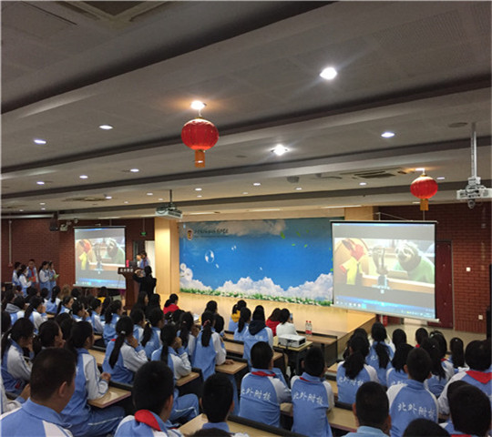 10月24日第八、九节,初一年级在二阶开展了配音比赛,共有15组选手参加,初一年级全体师生参加了此次比赛。比赛中每组选手都热情投入,仿佛将自己置身于电影的每个角色中,运用自己纯正而流利的英语口语。选手们有的选择了最近票房最火爆的迪斯尼3D动画片 “Zootopia”,配音中需要有特效,选手们每一个细节都演绎得十分出色,他们淋漓尽致的表演博得了阵阵掌声。有的选手们根据对情节的理解、对人物情感的细腻把握,选手们展示了不凡的配音表现,他们的表演惟妙惟肖,使得台下的老师和学生都沉醉其中。虽然影片中演员的语速很快,但配音同学们自然地紧跟节奏,出色的语音模仿将整场配音比赛的气氛推向高潮。屏幕上的人物角色在绘声绘色的表演,模仿的选手们通过表情和极富感染力的声音模仿,将影片中每一个配音的角色都诠释得活灵活现。台下的师生看得十分投入,不断地响起阵阵掌声。