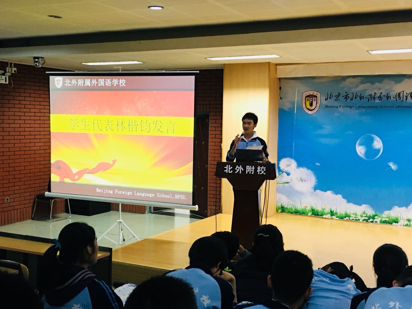 之后,由初三(3)班“海淀最美中学生”林楷钧同学作为学生代表进行发言。他以沉稳的语调,与同学们分享了自己对“如何学习”的认识,并以自己的母亲作为案例,向同学们传达“只要努力,就会获得真正的成功”的信念。他说:“即使一个人没有实现理想,那么,在他沿途奋斗的道路上,一定也是阳光万里的。”他的演讲震撼人心,获得了同学们的阵阵喝彩,掌声久久不息。最后,会议在李保申老师提出的对同学们的殷切希望中结束。
