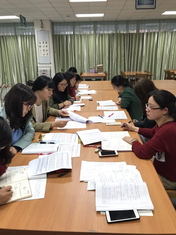随后教研组的各位老师又以集体研讨评课的形式在校阅览室进行研讨。