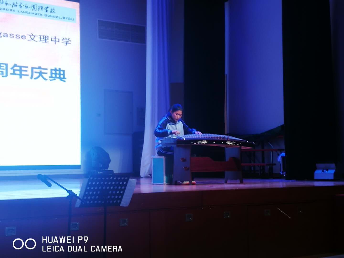 文艺表演中,艺术中心的学生们表演的朝鲜族舞蹈《花落花开》让在座的德国孩子们钦羡不已,色彩柔美的服装、精巧绝妙的编排展现了木槿花坚韧美好的精神。我校德英复语班的同学们多才多艺,古筝、吉他等乐器表演时而温柔婉转,时而欢快跳跃,让人不禁拍手叫好。两校的学生也为我们奉献出精彩的节目合唱,“Lass uns gehen, hinter Peking ,Berlin oder Köln. ”欢快的德文歌曲唱出了中德学生的友谊,也唱出了中德两国未来发展的美好希冀。