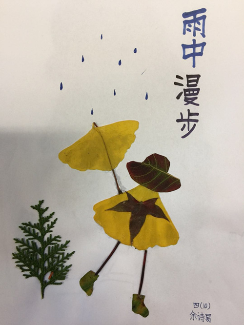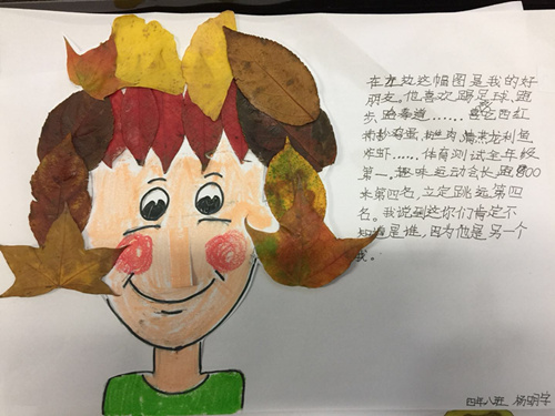 秋天是收获的季节,而冬天的落叶则别有一番情趣。伴随着树叶的漫天飞舞,为激发孩子们对季节变化的探究欲望,10月23日,北外附校小学四年级开展了以“秋韵”为主题的树叶粘贴画活动。