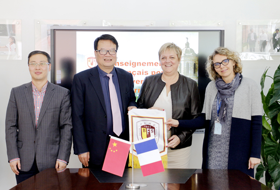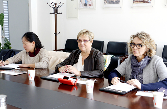 北外附校校长林卫民、副校长高雁鸣与 Claude 女士、Nathalie 女士会面