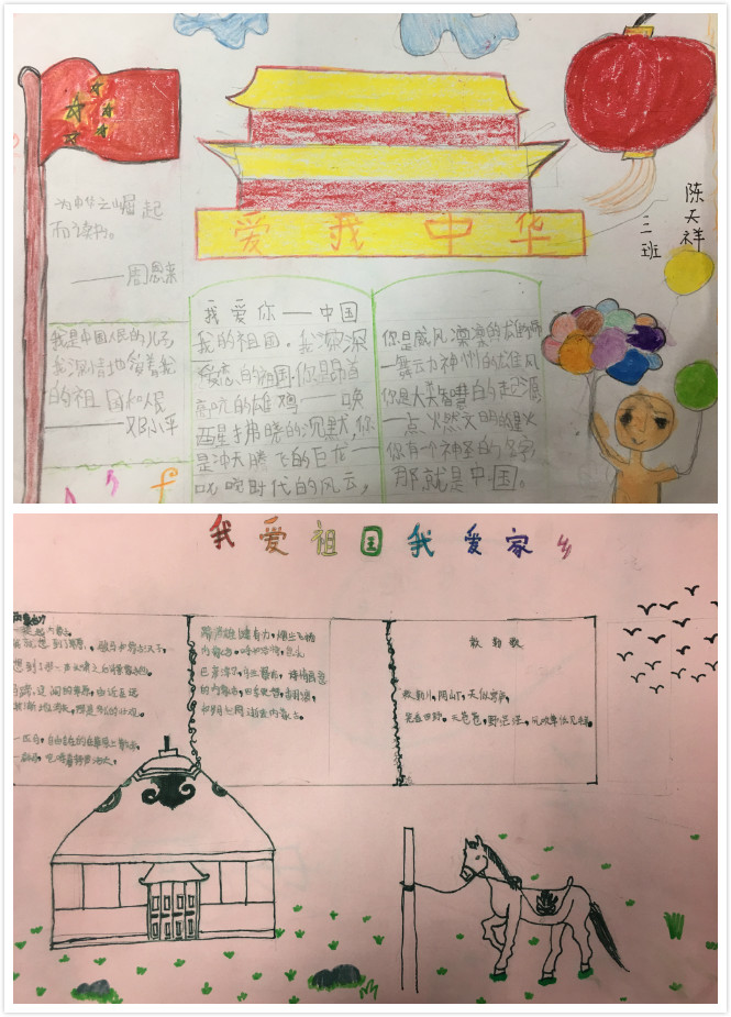 同时,围绕热爱党、热爱祖国、热爱家乡的主题,学生利用假期制作了手抄报,小小手抄报,浓浓爱国情,用真心表达自己的爱国之心。