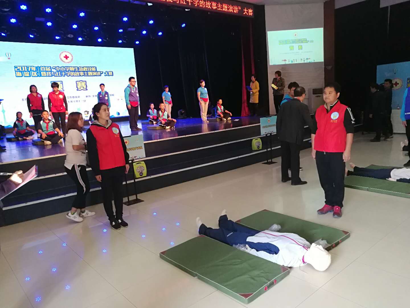 10月11日,海淀区学工委在寄读学校举办“2017年海淀区首届中小学师生急救技能暨我与红十字的故事主题演讲大赛”,中国红十字会总会组宣部青少年与志愿服务处副处长张灏,北京市红十字会志愿服务部部长冯克军,北京市学工委副秘书长李胜华,区委教工委副书记、区政府教育督导室主任、区学工委主任乔键,红十字国际委员会东亚地区代表处合作单位负责人、法律顾问沈腾,以及资深急救专家贾大成等嘉宾和专家亲临活动现场。