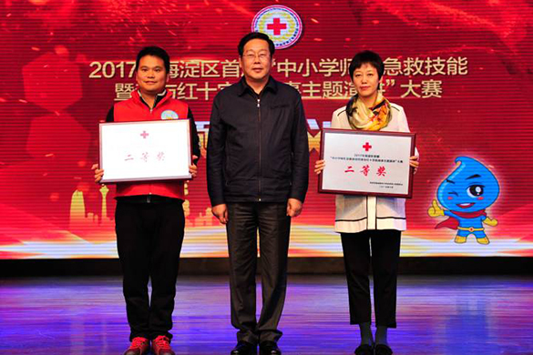 我校由刘志欣、许祥、李洪杰、郭汉武、张颖茜组成的参赛代表队经过精心准备,在海淀区参赛的17所强校中脱颖而出跻身进入决赛。决赛中我校代表队分别进行急救技能操作和演讲比赛,评委们则根据考核标准和队员的现场表现进行打分。我校选手们沉着冷静的比赛态度、娴熟有效的急救技能、还有声情并茂的现场讲述,赢得了现场观众和专家评委的一致好评,刘志欣获得主题演讲最佳个人奖,郭汉武、张颖茜获得创伤包扎操作项目最佳个人奖,我校以团体总分全区第二名的好成绩获得大赛二等奖。